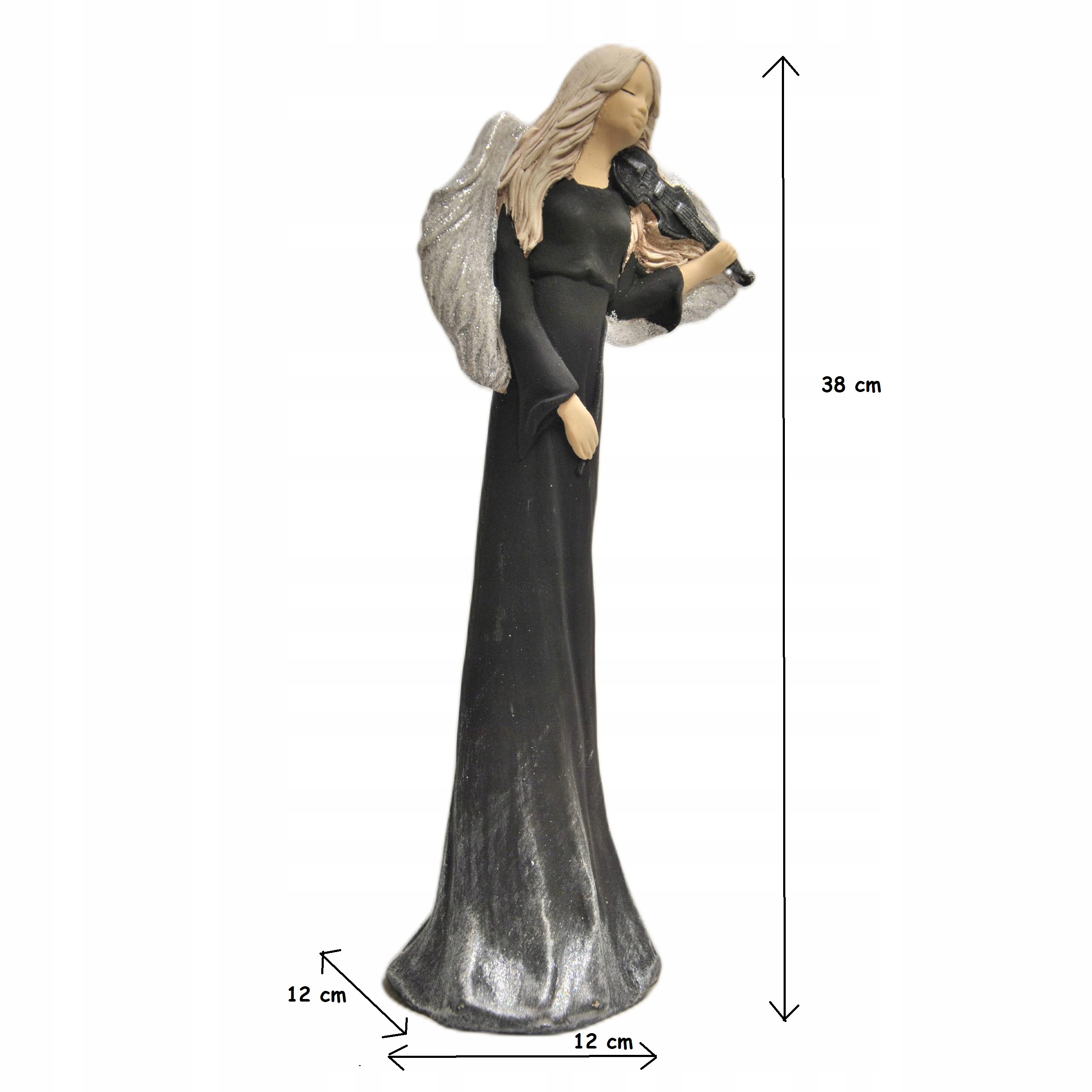 DUŻY CZARNY ANIOŁ ZE SKRZYPCAMI NA PREZENT DEKORACJA OZDOBA UPOMINEK
