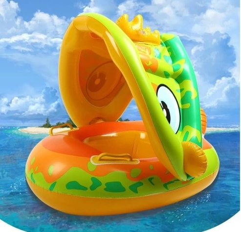 DUŻY PONTON DLA DZIECI Z DASZKIEM ODPINANYM I SIEDZISKIEM 2W1 MOTYW KACZKI