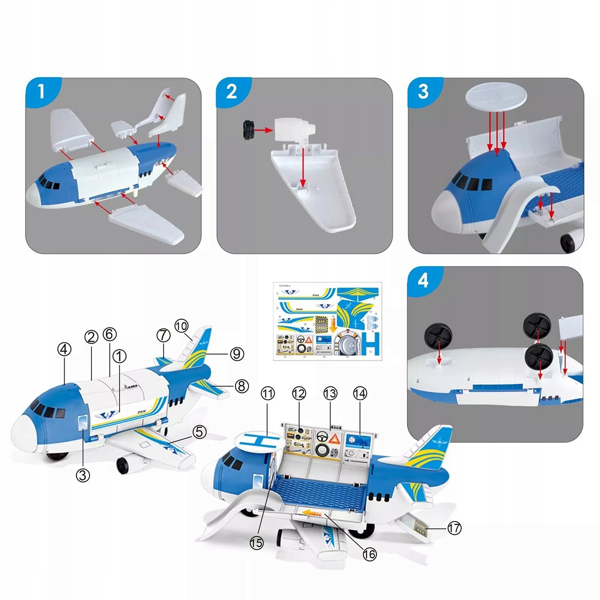DUŻY SAMOLOT TRANSPORTOWY ROZKŁADANY Otwierany +8 Auta prezenty dla dzieci