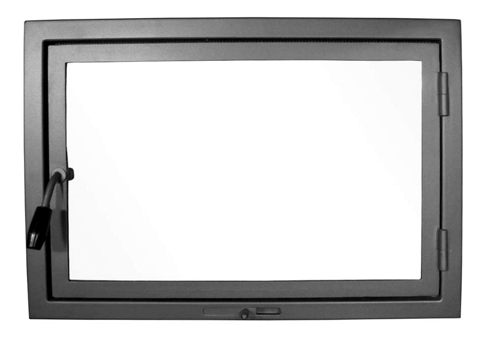 Эту модель двери мы рекомендуем особенно людям, у которых монтажный проем превышает 70х50 см. Прочная конструкция из закрытых профилей сечением 30х30 мм и толщиной стенки 3 мм делает двери безопасными даже при очень больших каминных проемах. За счет того, что дверная конструкция заходит внутрь проема, проем после открытия двери уменьшится примерно на 10 см в каждом измерении.
