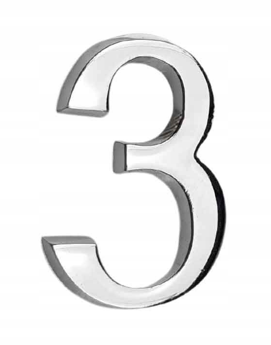 Цифра 3 для дверей, 45 мм, хром, самоклеящаяся