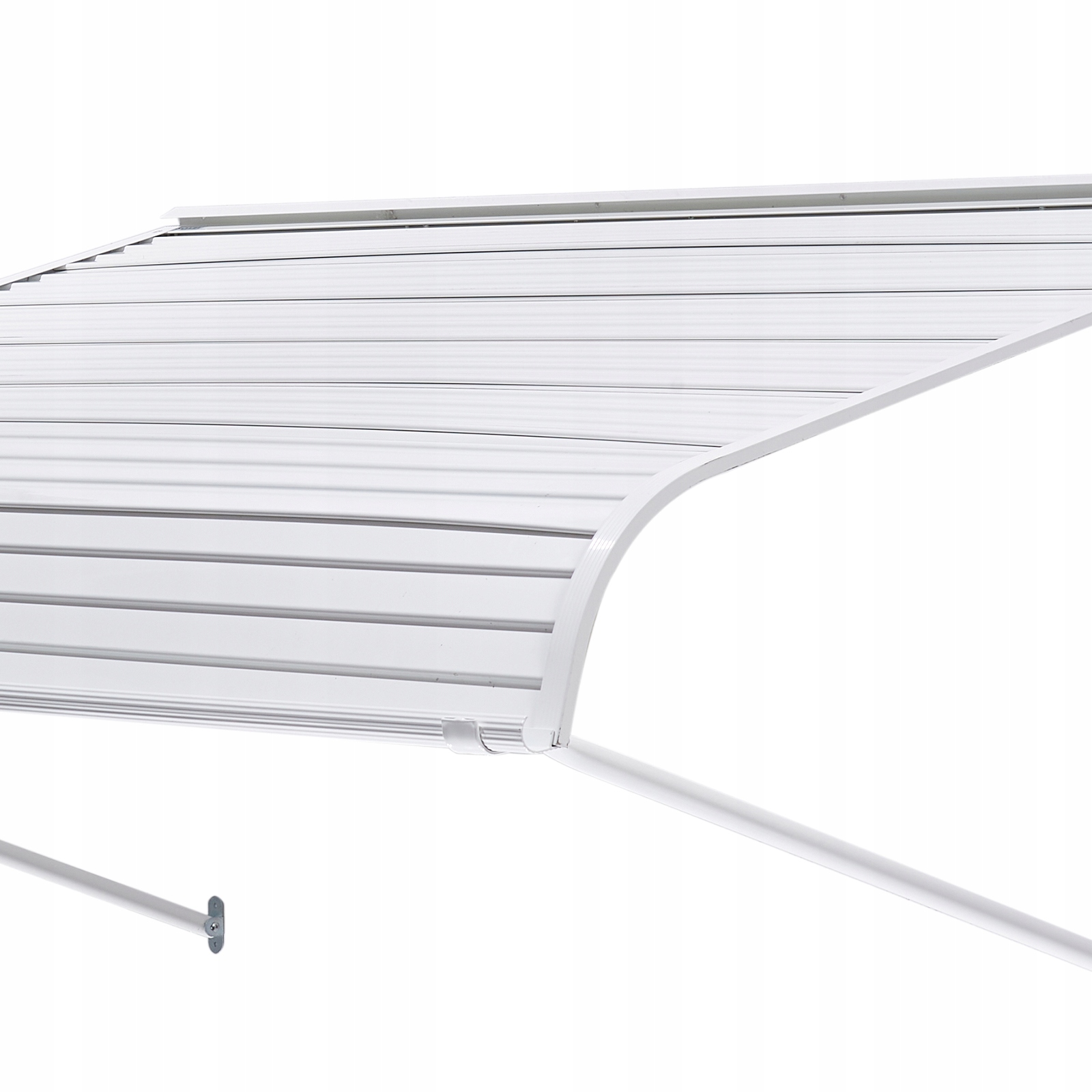 Умная конструкция потока воды: дверной навес оконной маркизы имеет изогнутые края и дренажную систему, которая эффективно направляет дождевую воду, предотвращая скопление воды и сохраняя навес чистым и сухим. Алюминиевые волнистые панели шириной 7,87 дюйма (20 см) плотно соединены между собой, что гарантирует отсутствие утечек даже в дождливые дни.