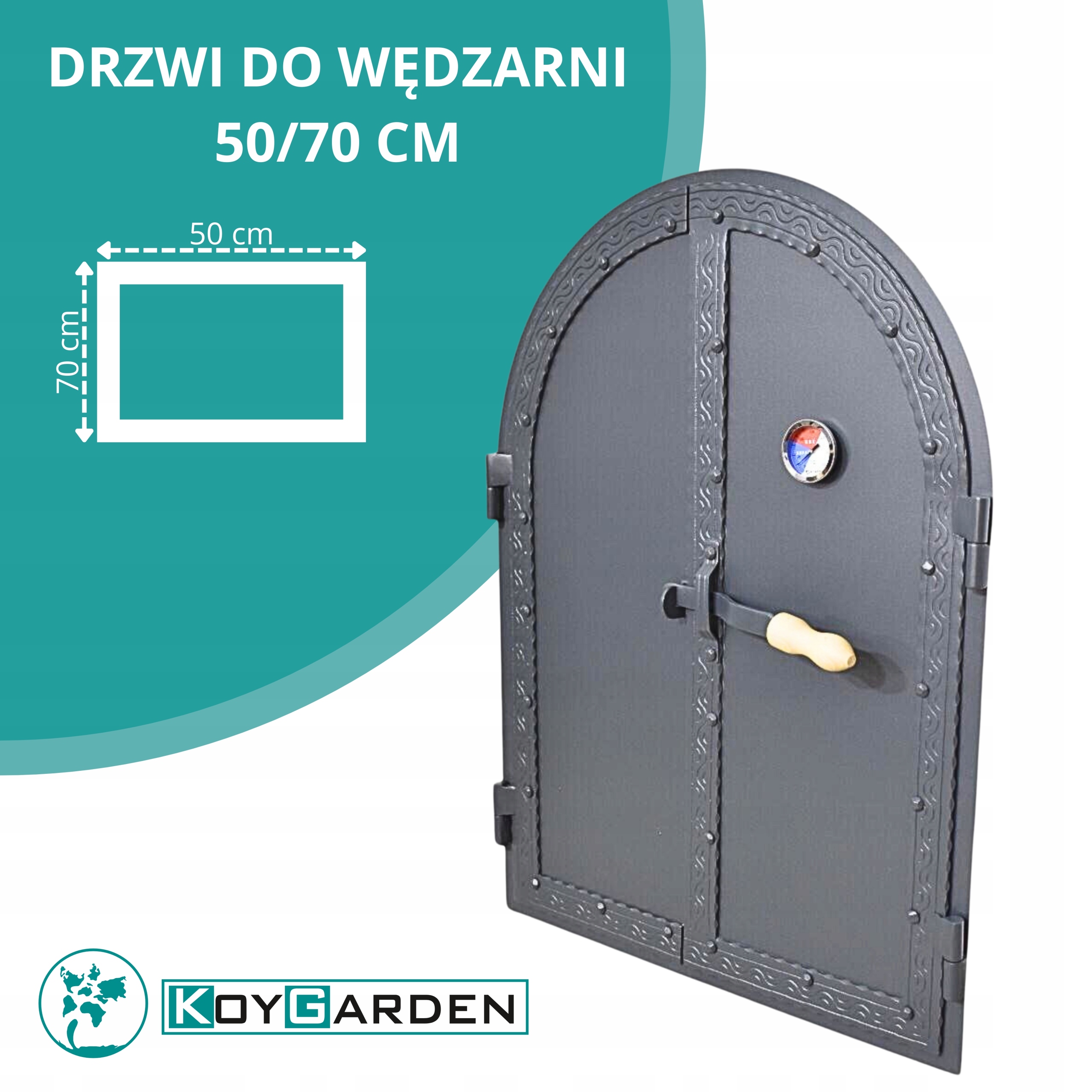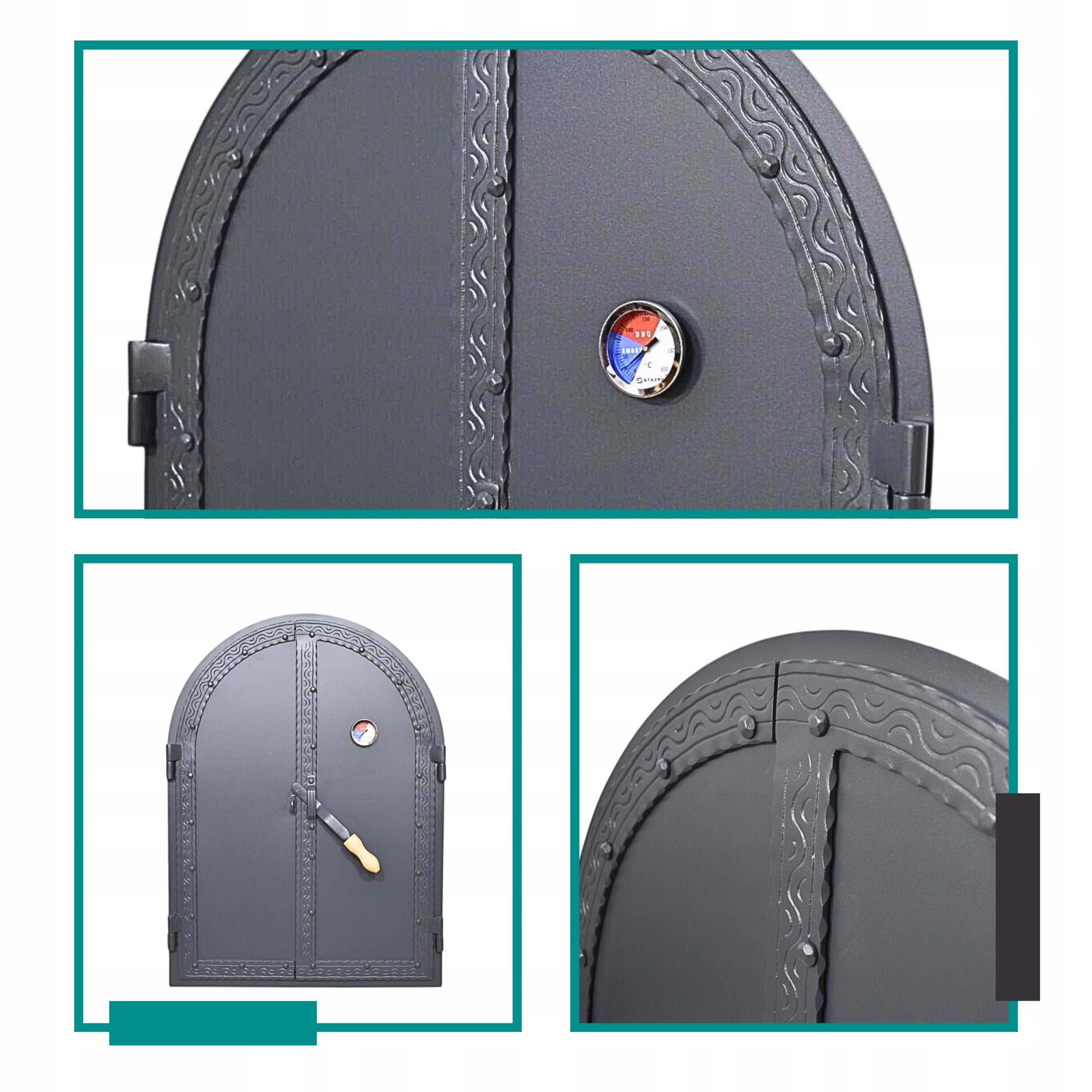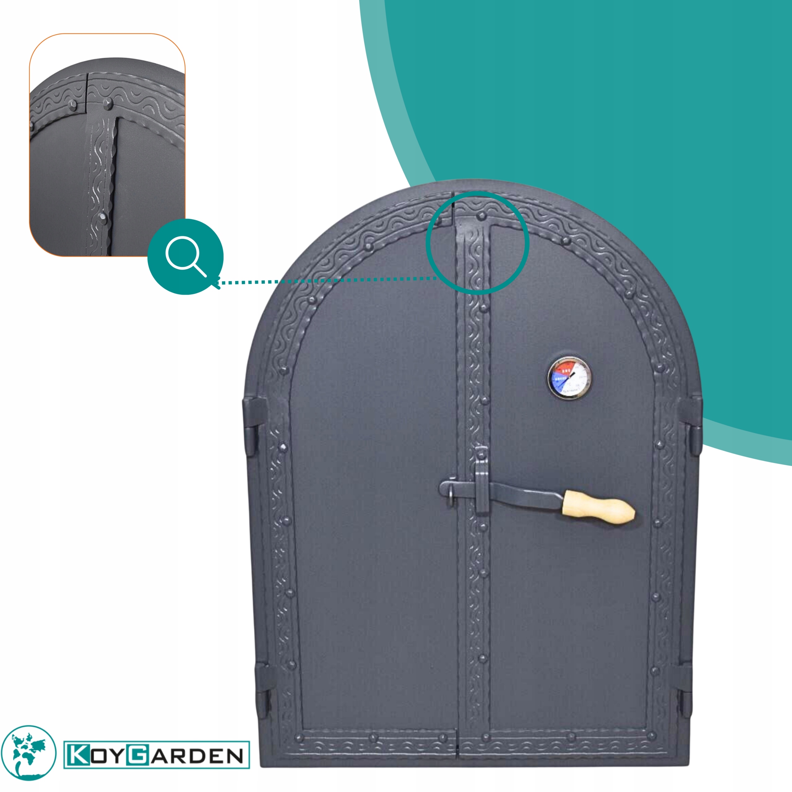Массивные стальные двери коптильни классической арочной формы, обогащенные декоративным тиснением, придающим им элегантный и искусный характер. Изготовленные полностью из стали толщиной 2 мм и установленные на прочном каркасе, они обеспечивают долговечность и устойчивость к интенсивному использованию.
