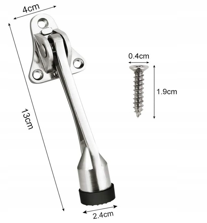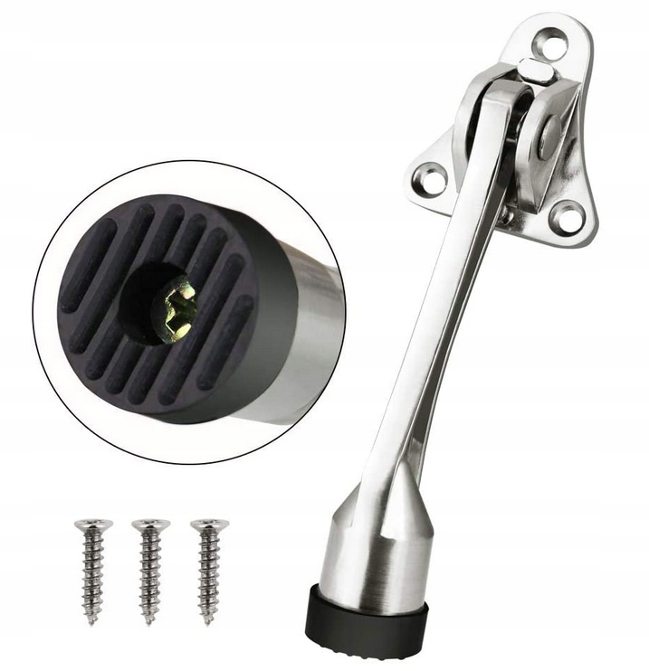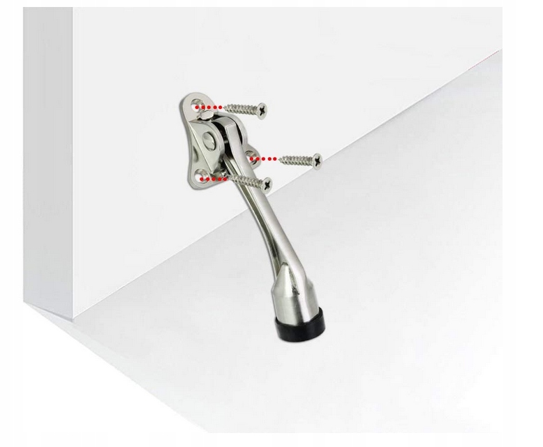 Защищает от автоматического закрытия двери и является эффективным замком. Ножка отлично подходит для блокировки входных, межкомнатных, балконных или гаражных ворот. Ножка изготовлена из высококачественной стали, что делает ее устойчивой к весу двери и различным механическим повреждениям.