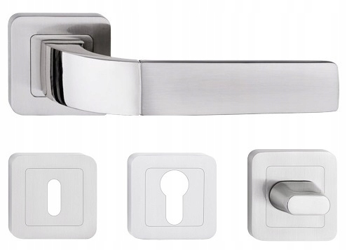 РУЧКА ДВЕРНАЯ PRIMA САТИНОВЫЙ НИКЕЛЬ, НАБОР РОЗЕТОК
