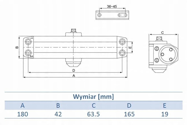 ДВЕРНОЙ ДОВОДЧИК С РЫЧАГОМ 40-65 КГ ЦВЕТА