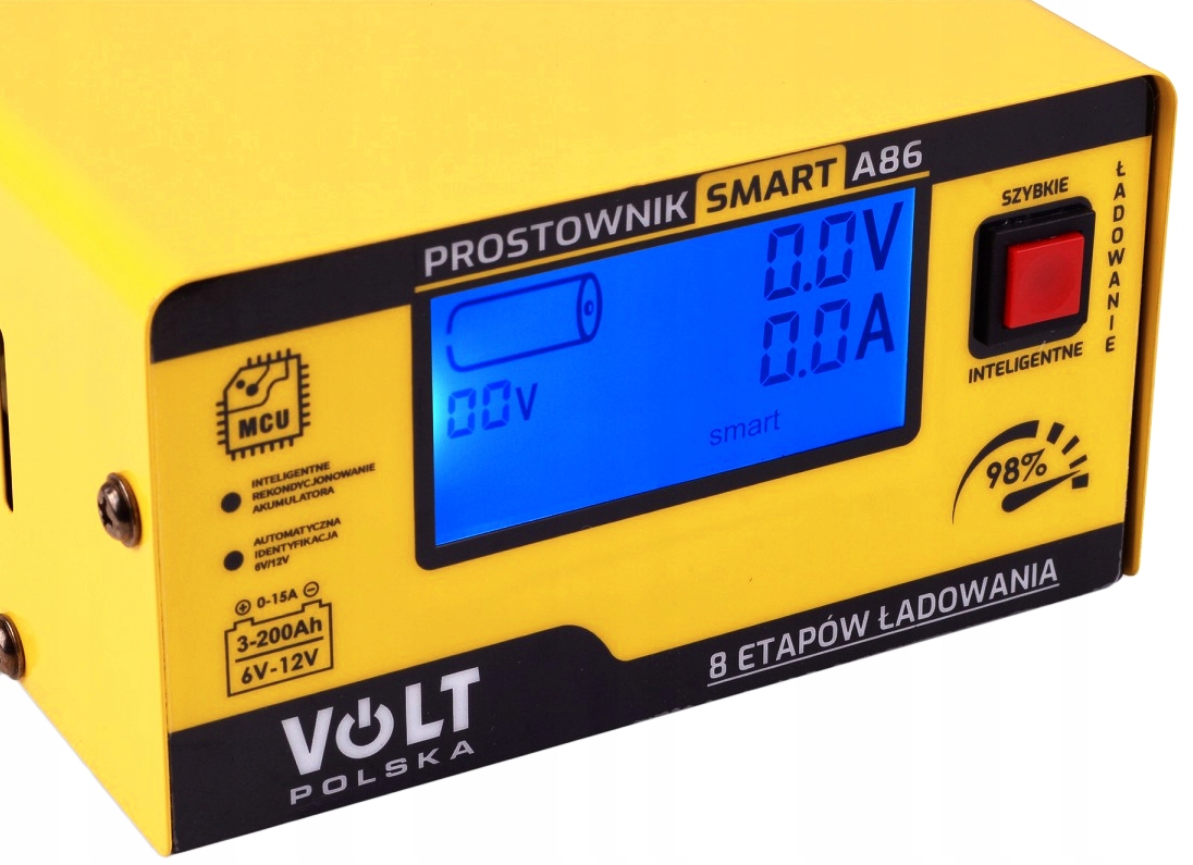 Выпрямитель SMART 6В/12В 15А А86 — первое на рынке зарядное устройство с микропроцессорной системой управления в технологии ШИМ с возможностью зарядки аккумуляторов до 6В. и 12В и возможность выбора нестандартных типов напряжения батареи. Благодаря интеллектуальной настройке параметров позволяет восстанавливать разряженный аккумулятор.