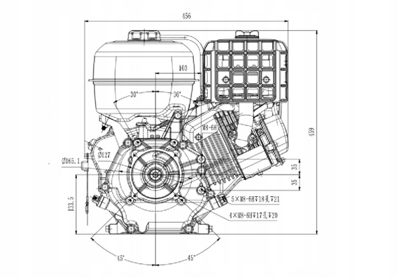- Тип двигателя - бензиновый, одноцилиндровый, четырехтактный, верхнеклапанный (OHV), с воздушным охлаждением