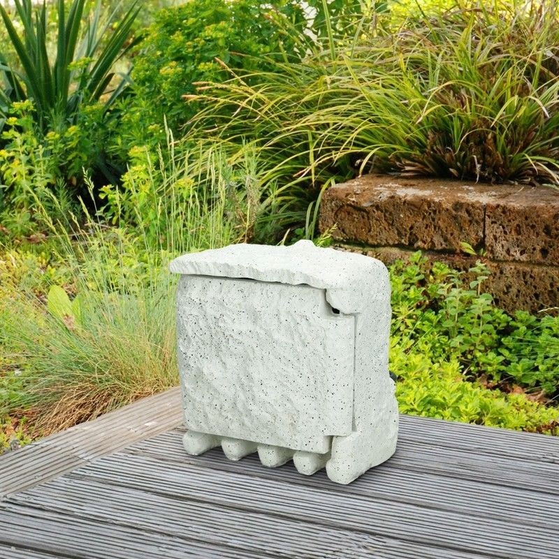 - Устройство по своей структуре, форме и цвету напоминает камень, поэтому не нарушает эстетику сада. Он может работать как источник питания для фонтанных водяных насосов, фильтров и т. д.