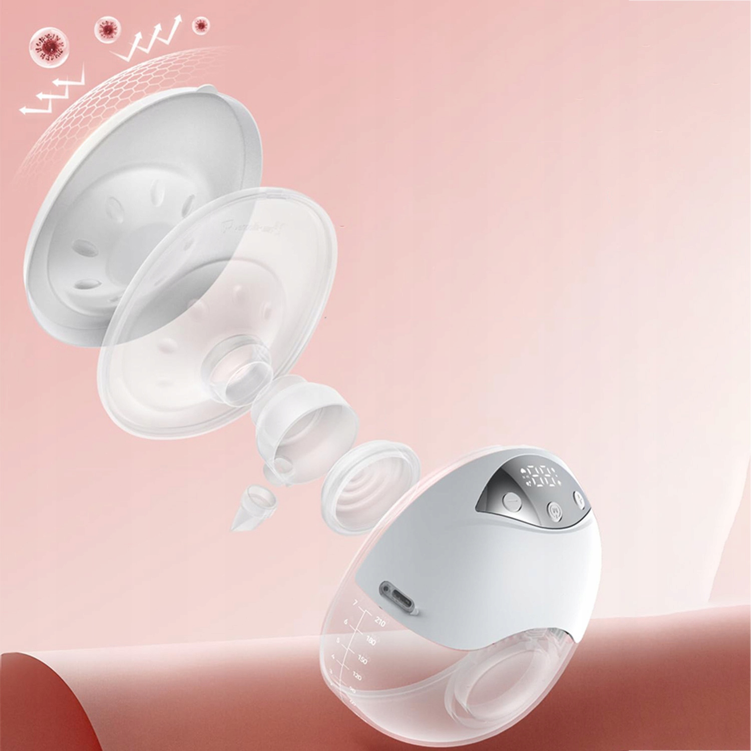 мы придаем особое значение здоровью матери и ребенка. Вот почему мы используем жидкий силикон, разрешенный для контакта с пищевыми продуктами, что обеспечивает безопасность и надежность при каждом применении. Пылезащитный чехол обеспечивает гигиеничное хранение молокоотсоса. Все детали, контактирующие с молоком, съемные и легко разбираются для тщательной очистки и дезинфекции.