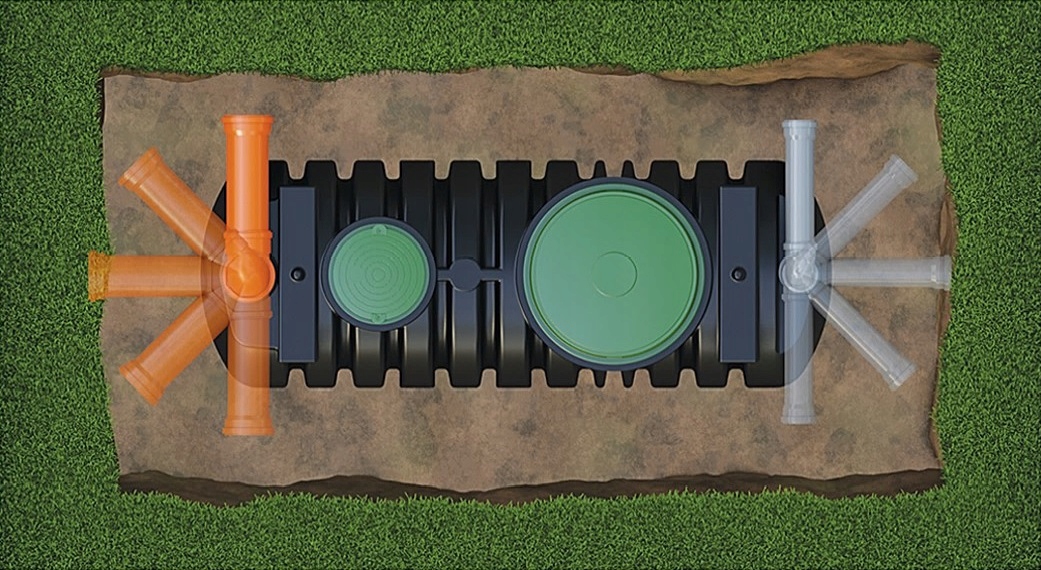 ✅Двухкамерная очистная станция, 2000л, 32 метра дренажа на 4 человека