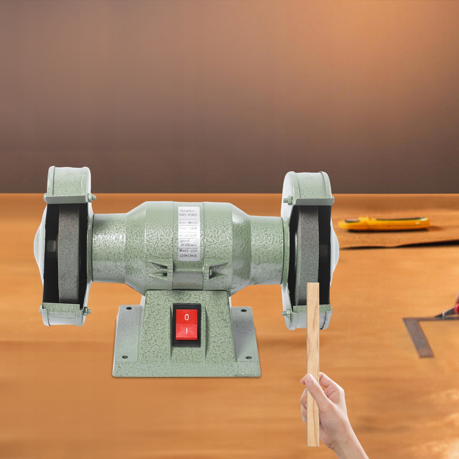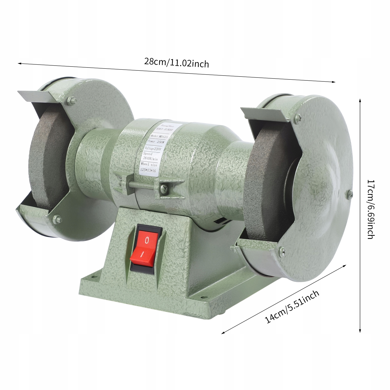 Эффективное шлифование: Два шлифовальных диска диаметром 4,92 дюйма (12,7 мм) характеризуются высокой твердостью и безопасной линейной скоростью 39,7 м/с (39,7 м/с). м/с), что позволяет быстро и эффективно заточить такие инструменты, как режущие инструменты и сверла.