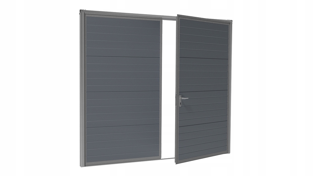 Конструкция открытых ворот состоит из алюминиевых профилей. Алюминиевая рама усилена из оцинкованной стали с размерами 40 × 40 мм. Ворота имеет небольшой порог 10 мм . Аренда затвора построена из панелей для сегментных ворот с толщиной 40 мм , заполненной полиуретановой пеной. Запечатывающая кисть. Ворота имеют симметричное разделение крыльев, они всегда открываются за пределами комнаты. Активное крыло оборудовано замком с вставкой и ручкой дверей и болтом в нижнем и верхнем крыле
