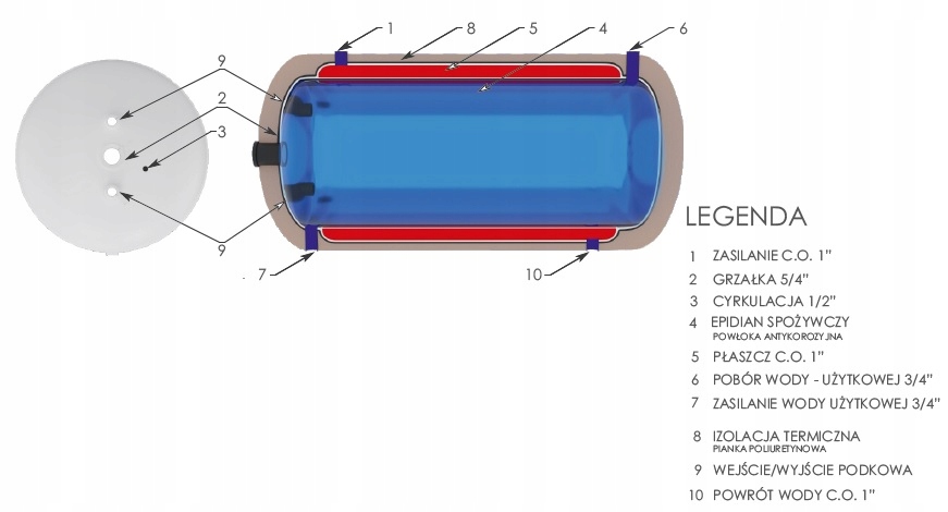 Внутреннее антикоррозионное покрытие - бак изготовлен по технологии смоляного покрытия, для чего используется пищевой ЭПИДИАН, одобренный Польской ассоциацией гигиены.