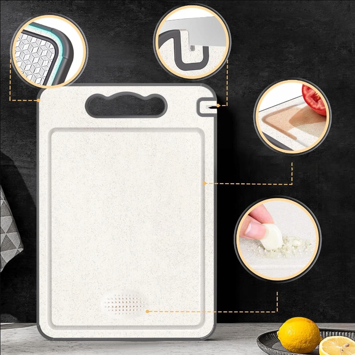 - Он имеет конструкцию 2 в 1 и может использоваться с обеих сторон. Одна сторона подходит для обрезки овощей и фруктов, а другая для резки мяса, чтобы избежать резки.