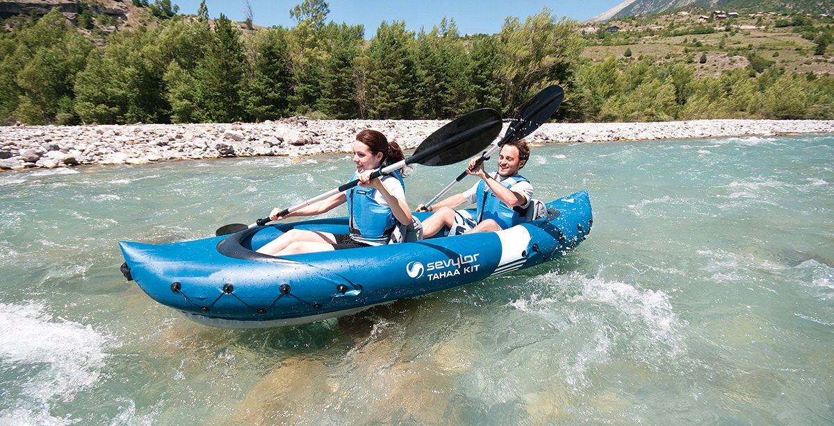 Каяк для двоих Tahaa® Kit от Sevylor имеет прочную конструкцию и максимальную нагрузку 160 кг. Изготовлен из ПВХ, имеет 3 воздушные камеры и широкую конструкцию, обеспечивающую высокую устойчивость.