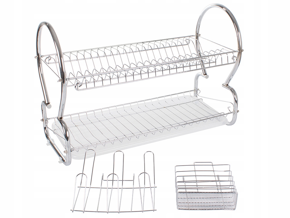 ДВОРІВНЕВА СУШКА ДЛЯ ПОСУДУ, СУШКА СТОЯЧА, срібляста, з ПІДНОКОМ