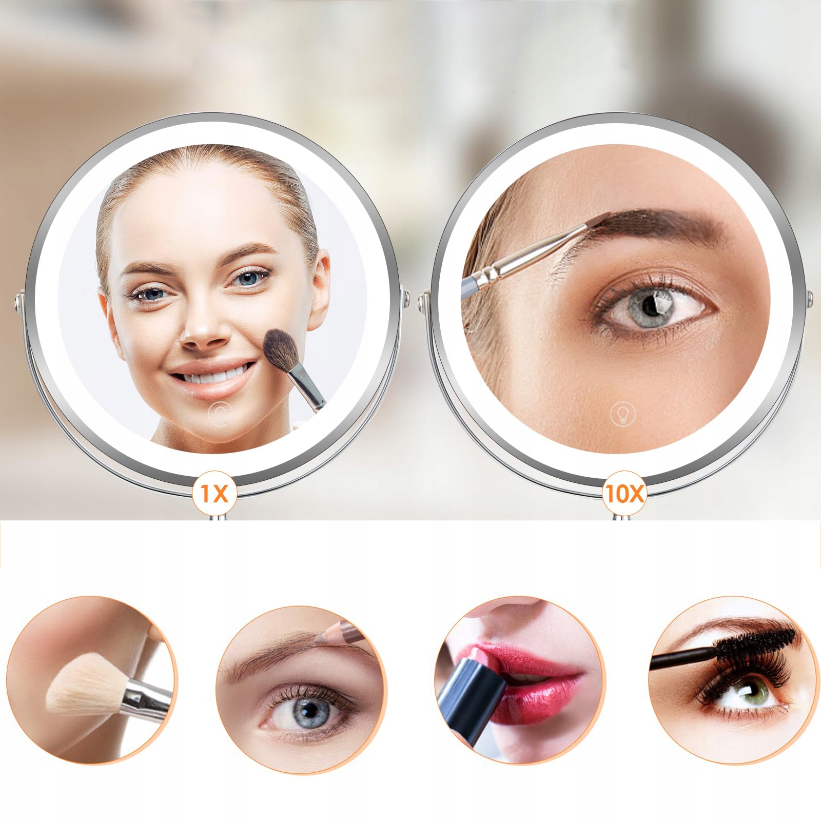 ✨ Благодаря двусторонней конструкции каждая сторона предлагает два разных увеличения, что позволяет переключаться между обычными линзами и линзами для макросъемки для точного нанесения макияжа.