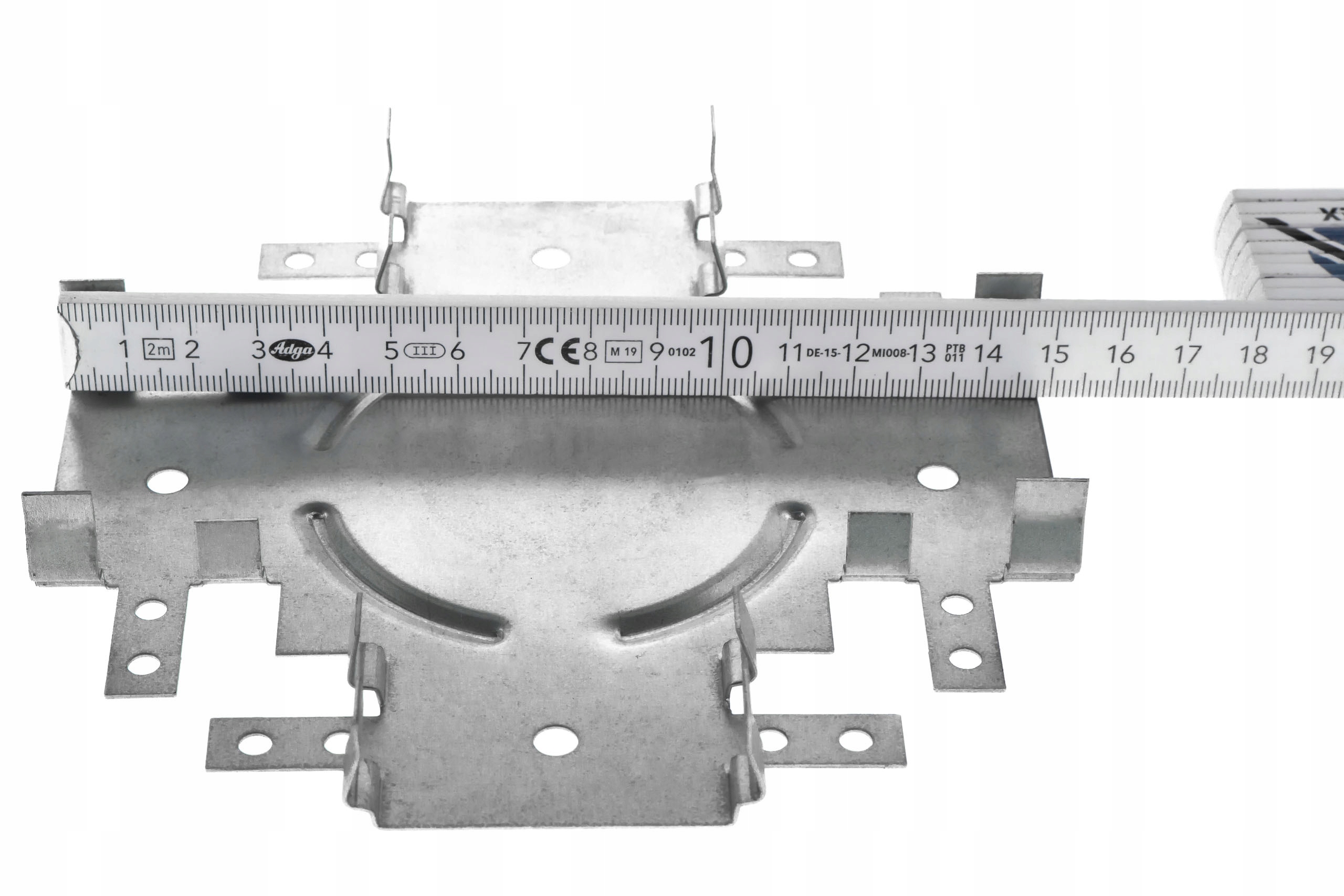 Двусторонний перекрестный соединитель может использоваться при монтажных работах внутри здания в качестве элемента, соединяющего профили CD60 в конструкции подвесного потолка. Данное изделие отличается высокой прочностью и устойчивостью к коррозии, поскольку изготовлено из оцинкованной стали, что также влияет на прочность создаваемых с его помощью соединений.
