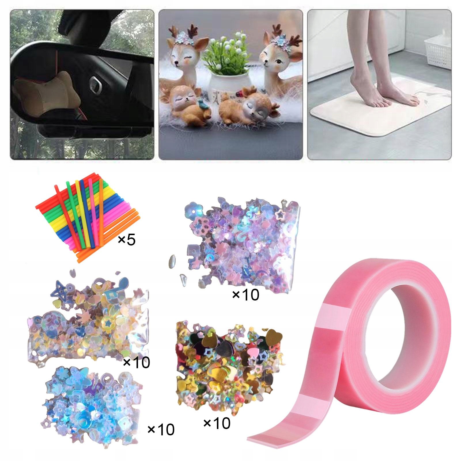 [Изделия для выдувания пузырей] 1 рулон двусторонней ленты, 4 вида блесток и 100 трубочек подарят вам замечательный опыт работы своими руками и хорошее настроение.