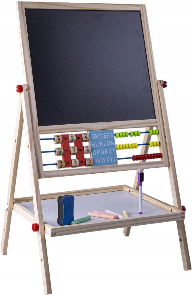 С одной стороны — меловая доска, с другой — магнитная поверхность для письма маркерами. Он идеально подходит для развития художественных навыков рисования мелом или маркером, а также обучения письму.