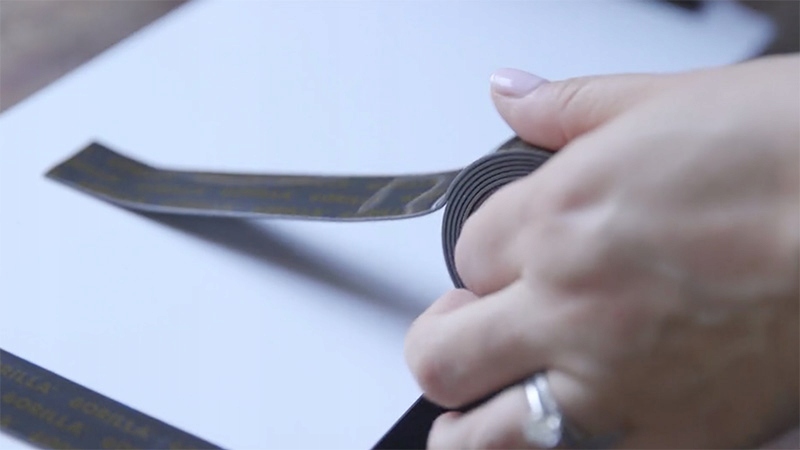 лента сборки гориллы является долговечной лентой и может привести к повреждению поверхности. Чтобы удалить ленту, вы должны сначала разорвать установленный объект. Для этого вы должны медленно отсоединить установленное объект, начиная с одного угла. Затем монтажную ленту можно удалить, медленно растягивая ленту параллельно поверхности.