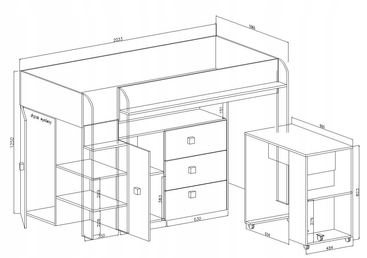 Двухъярусная кровать мезонин Толедо 1 с письменным столом