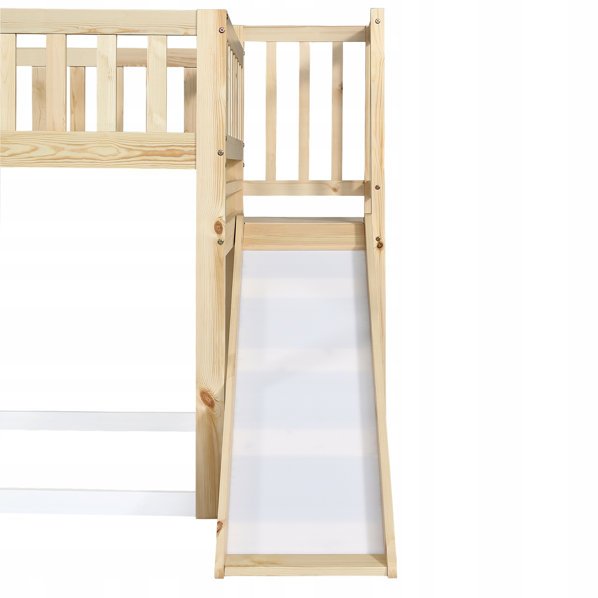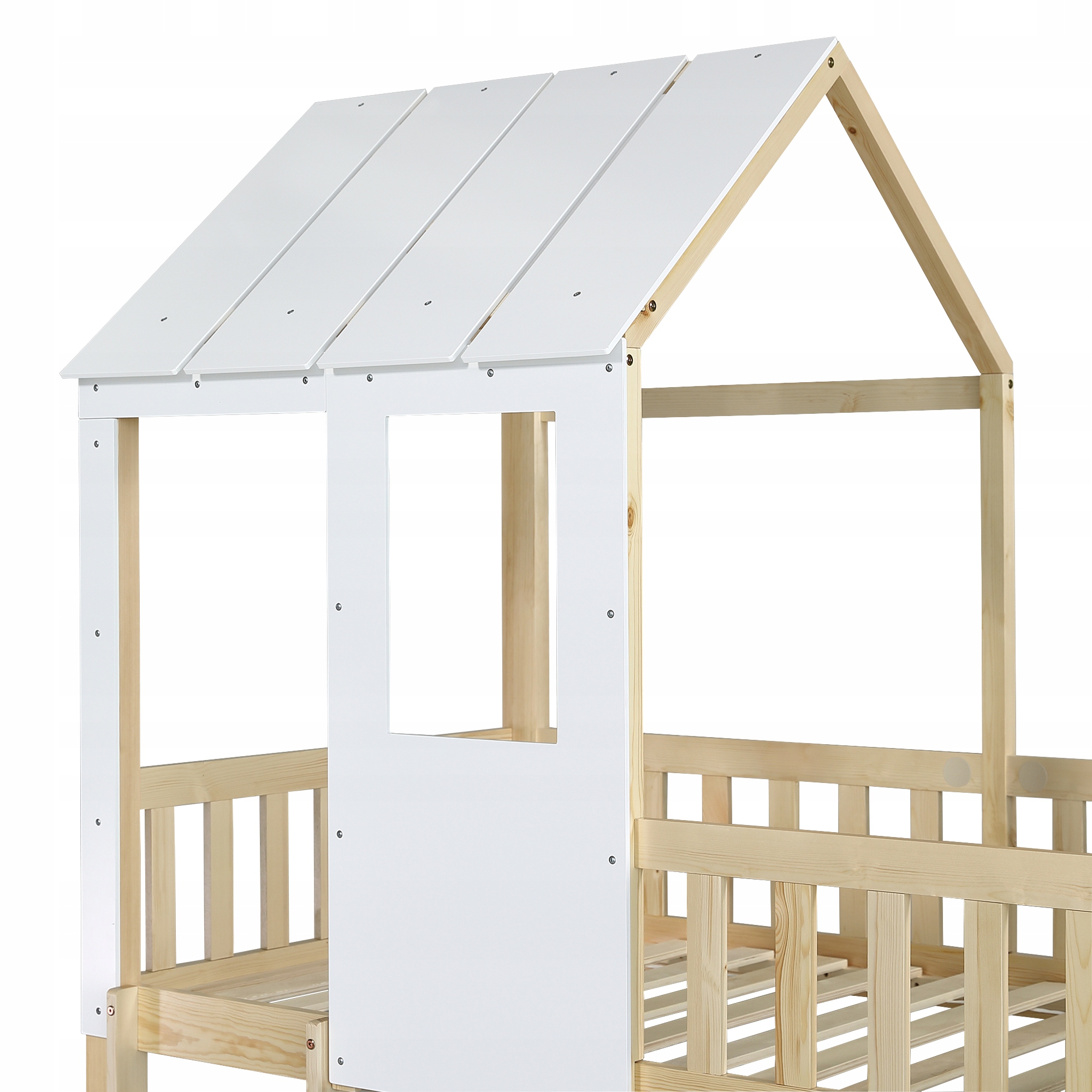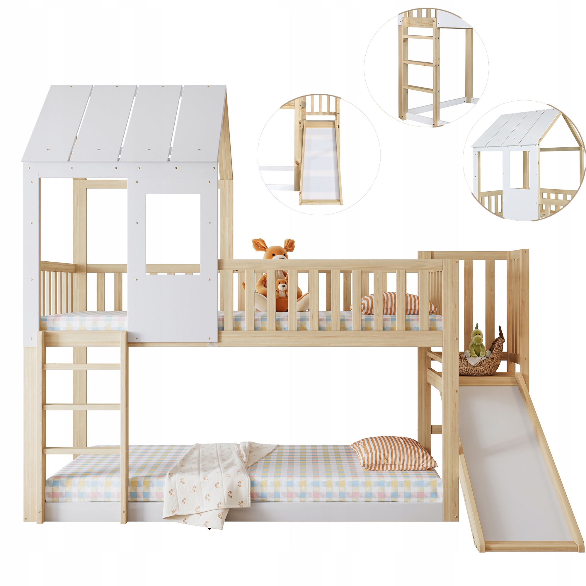 Двухъярусная кровать с лестницей и слайдом, дом, сосна 90x200 см.