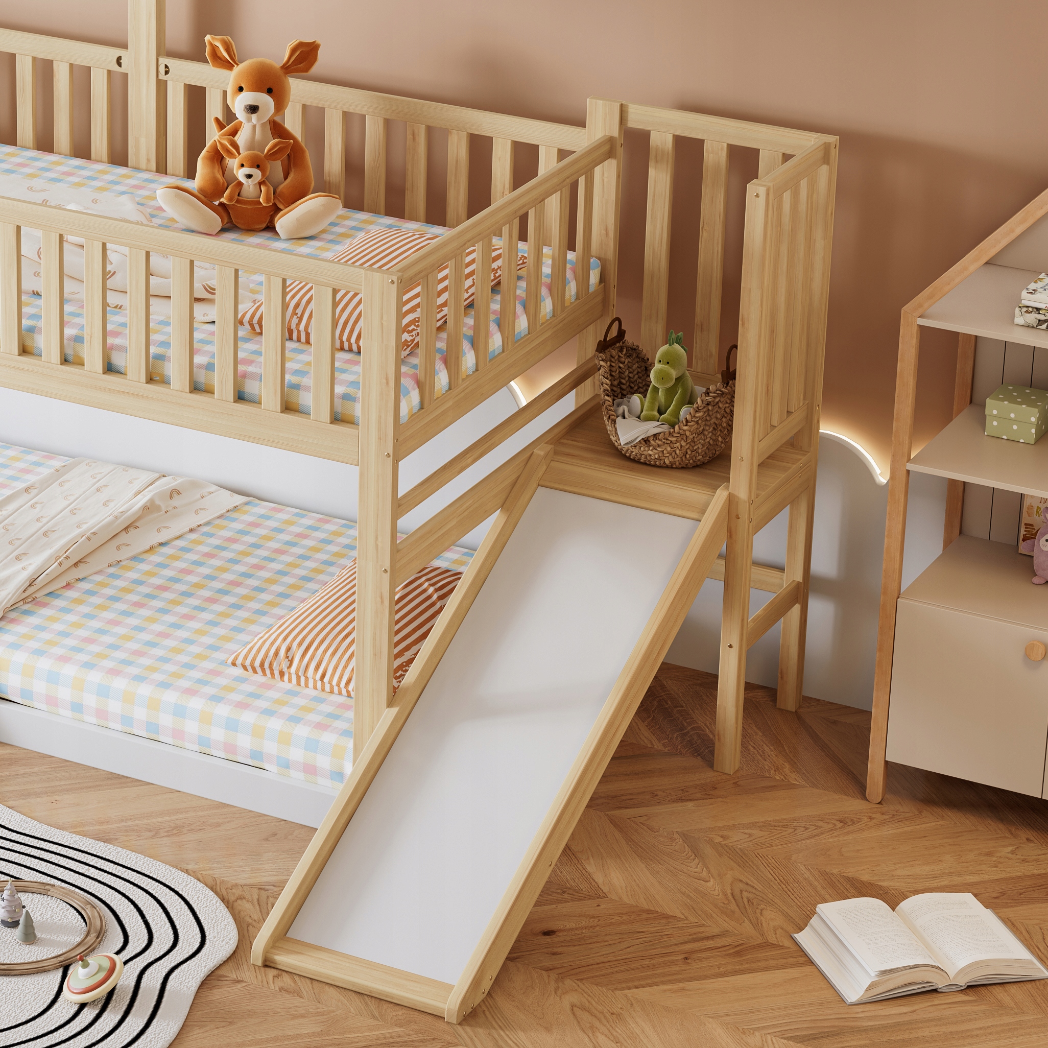 ✨ [Дизайн] Эта двухъярусная кровать со слайдом сделана из белого и натурального дерева, идеально адаптируется к любому декору. Выберите эту кровать, чтобы дополнить свой домашний декор и добавить спальню уникальным акцентом.