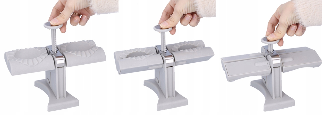 Просто нажмите кнопку, расположенную в центре устройства, и две формы закроются, придавая пельменям красивую форму.