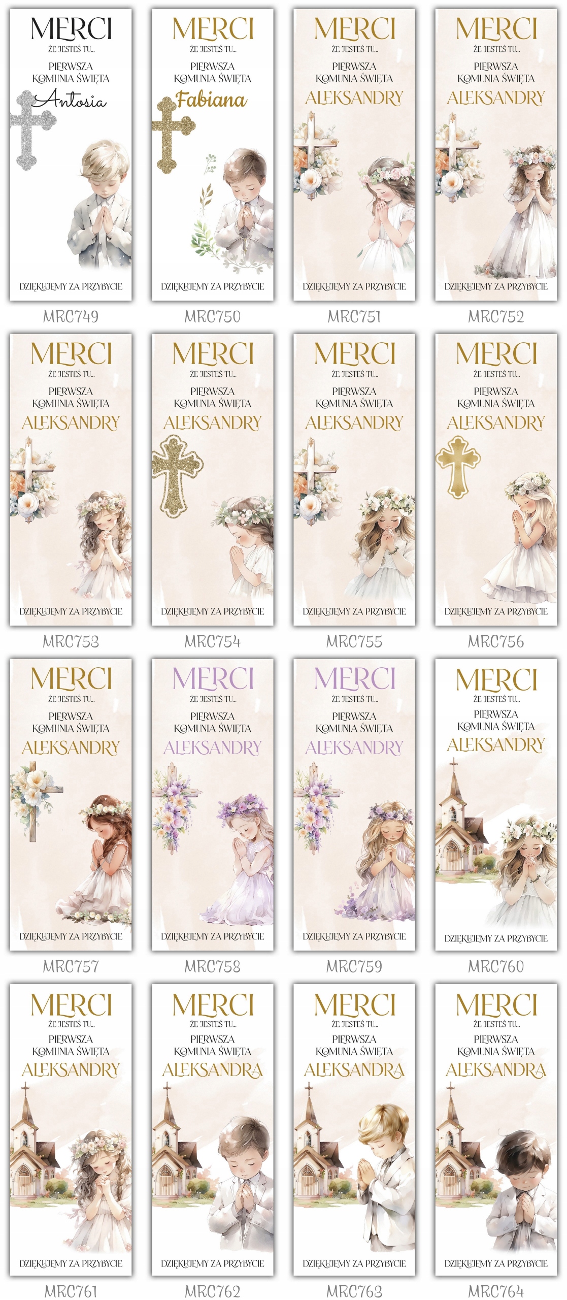 Дякуємо гостям MERCI за Перше Причастя, 6 шт