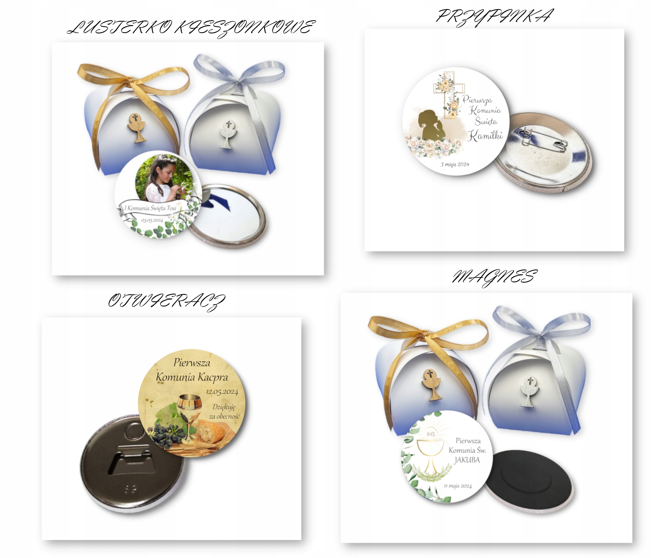 Высокий продукт каким -то образом - каждый подарок, защищенный фольгой. Очень высокая устойчивость к внешним факторам, то есть брызганию и т. Д., Которые обеспечивают длительный срок службы продукта :) например Вы заказываете 100 подарков - заказывайте 40 карманных зеркал для женщин, 40 магнитов для мужчин и для детей 10 булавок :). Благодаря этому все гости не получат то же самое, а подарки будут еще более персонализированными и уникальными.