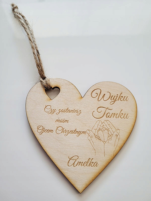 Красивый деревянный кулон-сердце или магнит можно подарить гостям в знак благодарности по любому поводу: дни рождения, годовалки, причастия, крещения, свадьбы, девичники, юбилеи и т. д. Магнит/подвеска на холодильник – это Оригинальная форма благодарности, которая станет прекрасным сувениром на будущее. Деревянный кулон/магнит украшен точной индивидуальной гравировкой. 2 вида на выбор: кулон на джутовой веревке или магнит на холодильник с прикрепленным магнитом.