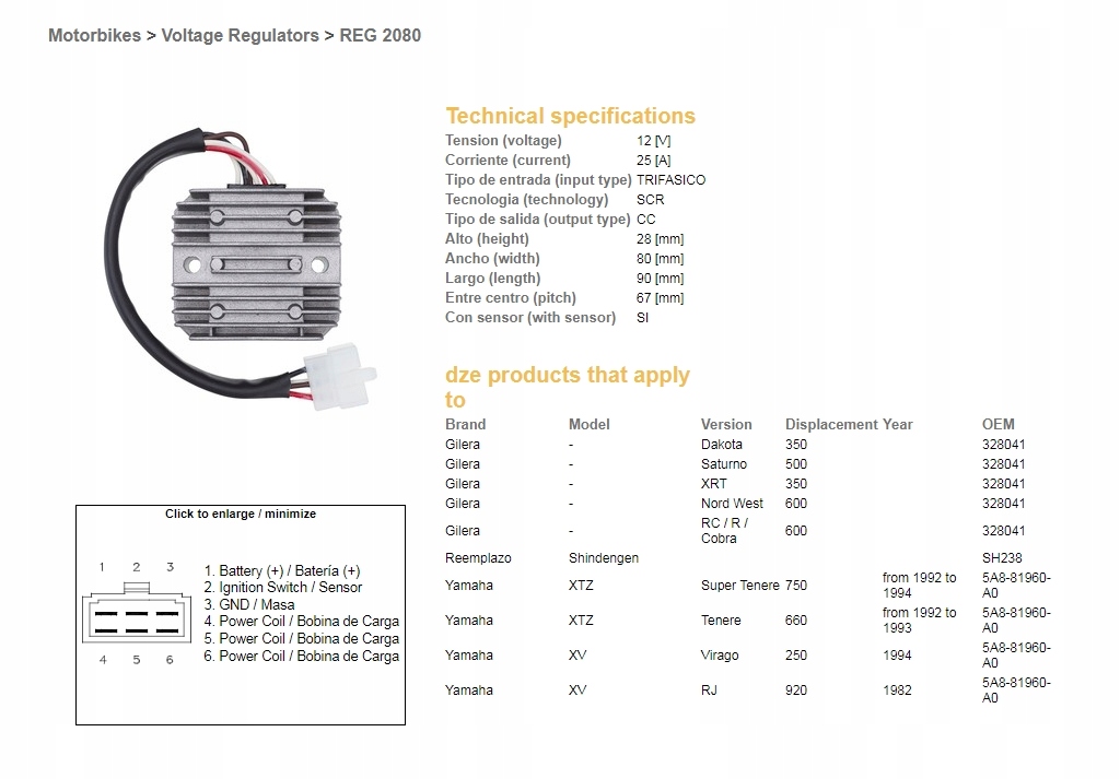 РЕГУЛЯТОР НАПРЯЖЕНИЯ DZE YAMAHA XTZ660 '92-'93, XTZ7
