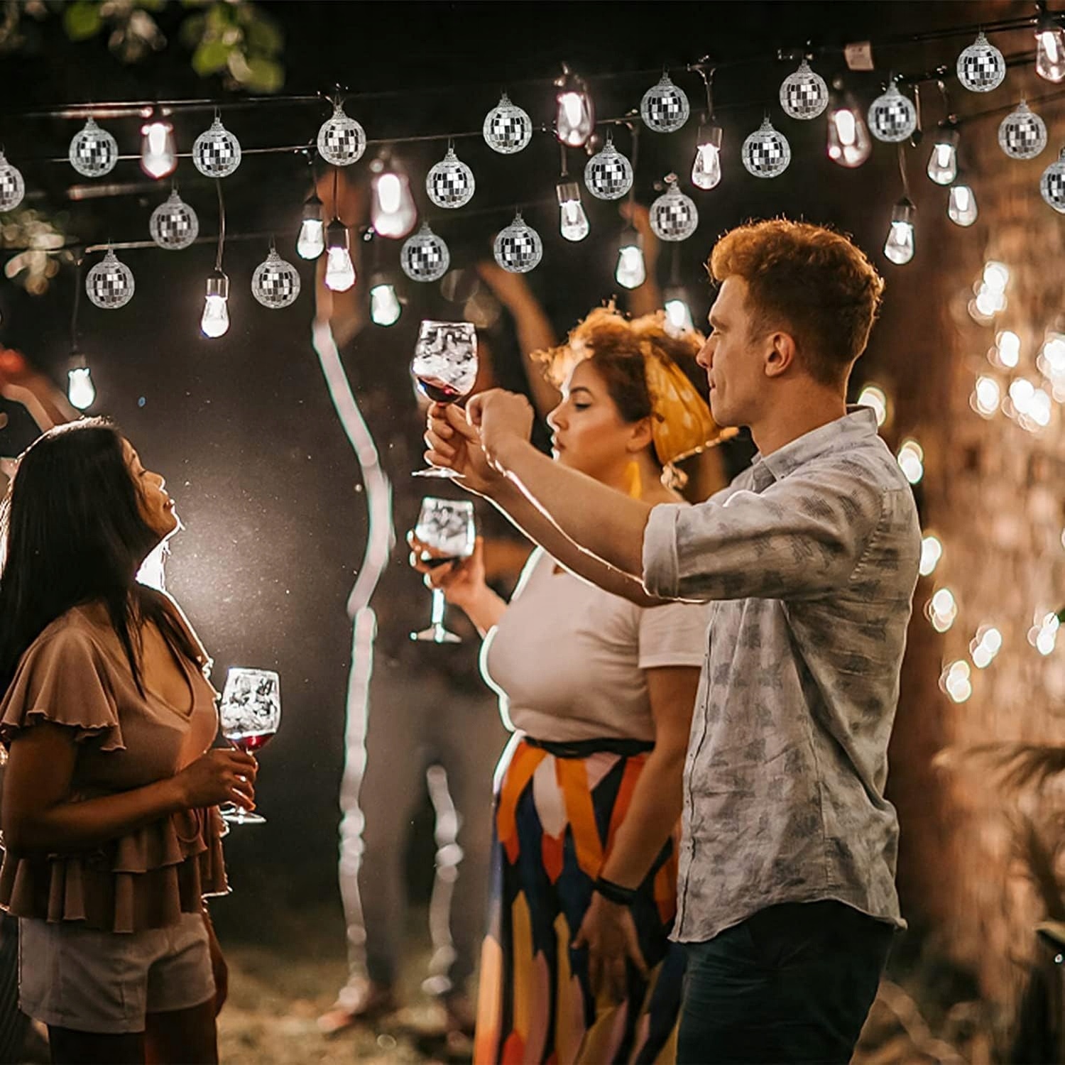 - Легко повесить — к мини-диско-шарам из 24 штук прикреплена веревка, это не требует много времени и усилий, просто повесьте их на стену или потолок и все готово. Легкий вес и подходящий размер, вы можете повесить их в нужном месте в соответствии с вашими потребностями и предпочтениями, например, на деревьях, потолках, дверях, окнах и т. д.