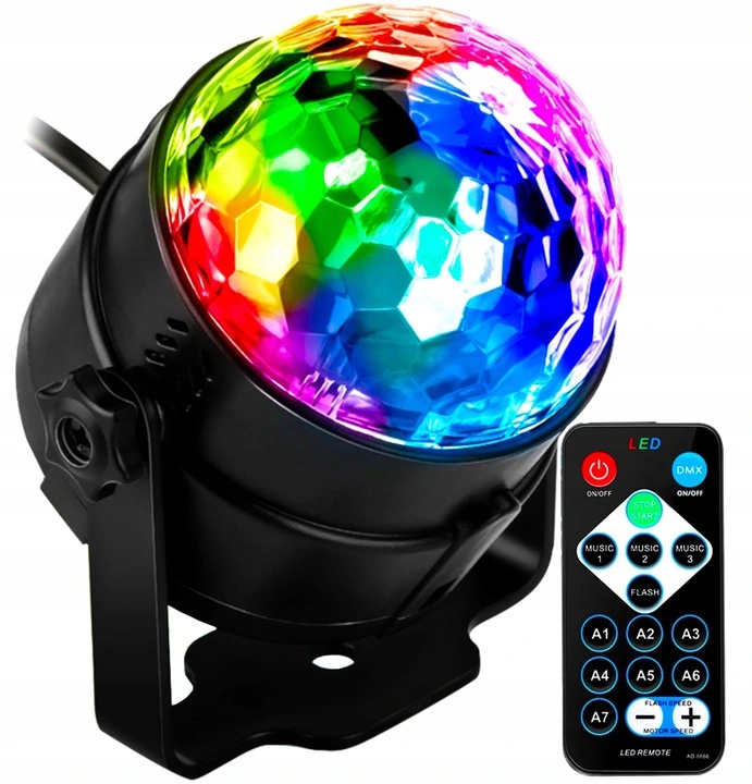 СВЕТОДИОДНЫЙ ШАР ДИСКОТЕЧЕСКОГО ПРОЕКТОРА + ПУЛЬТ ДУ