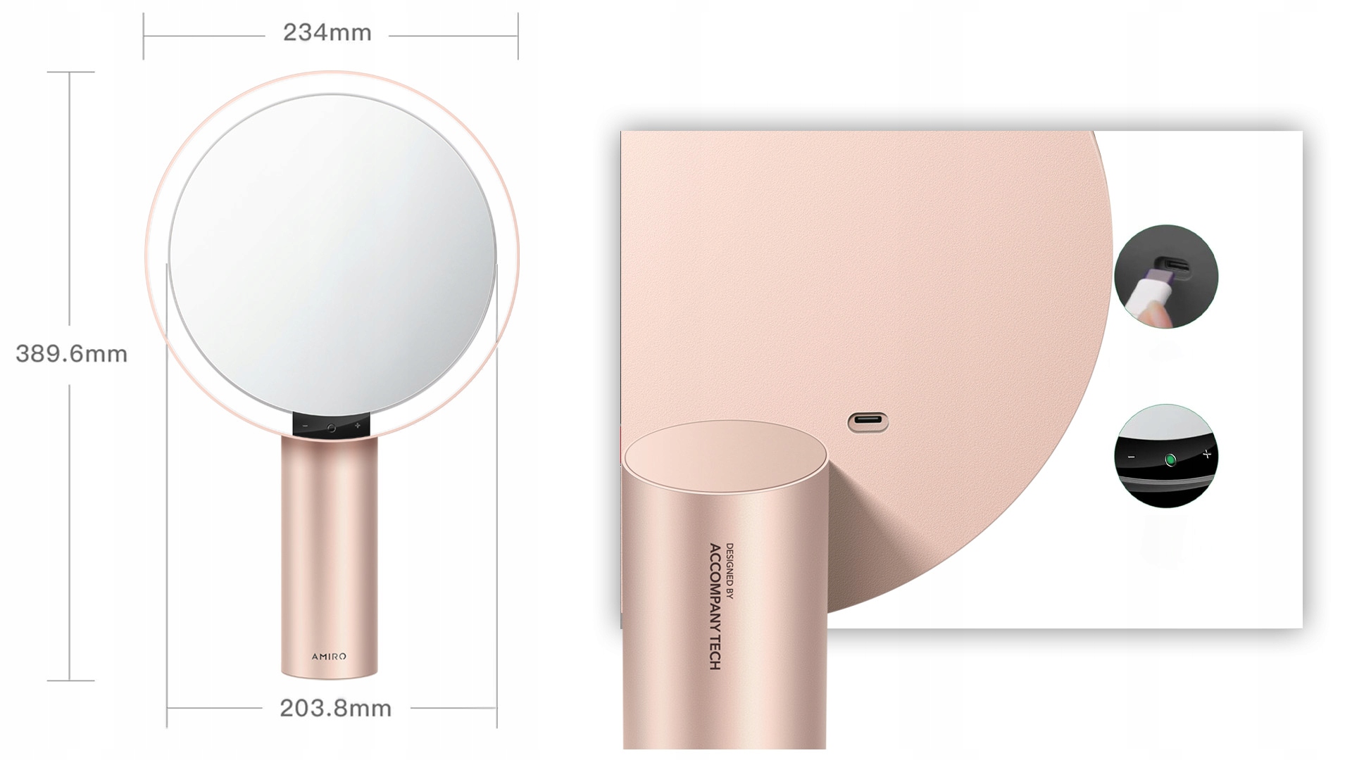Дзеркало для макіяжу з LED підсвічуванням AMIRO Oath Auto illuminate PINK