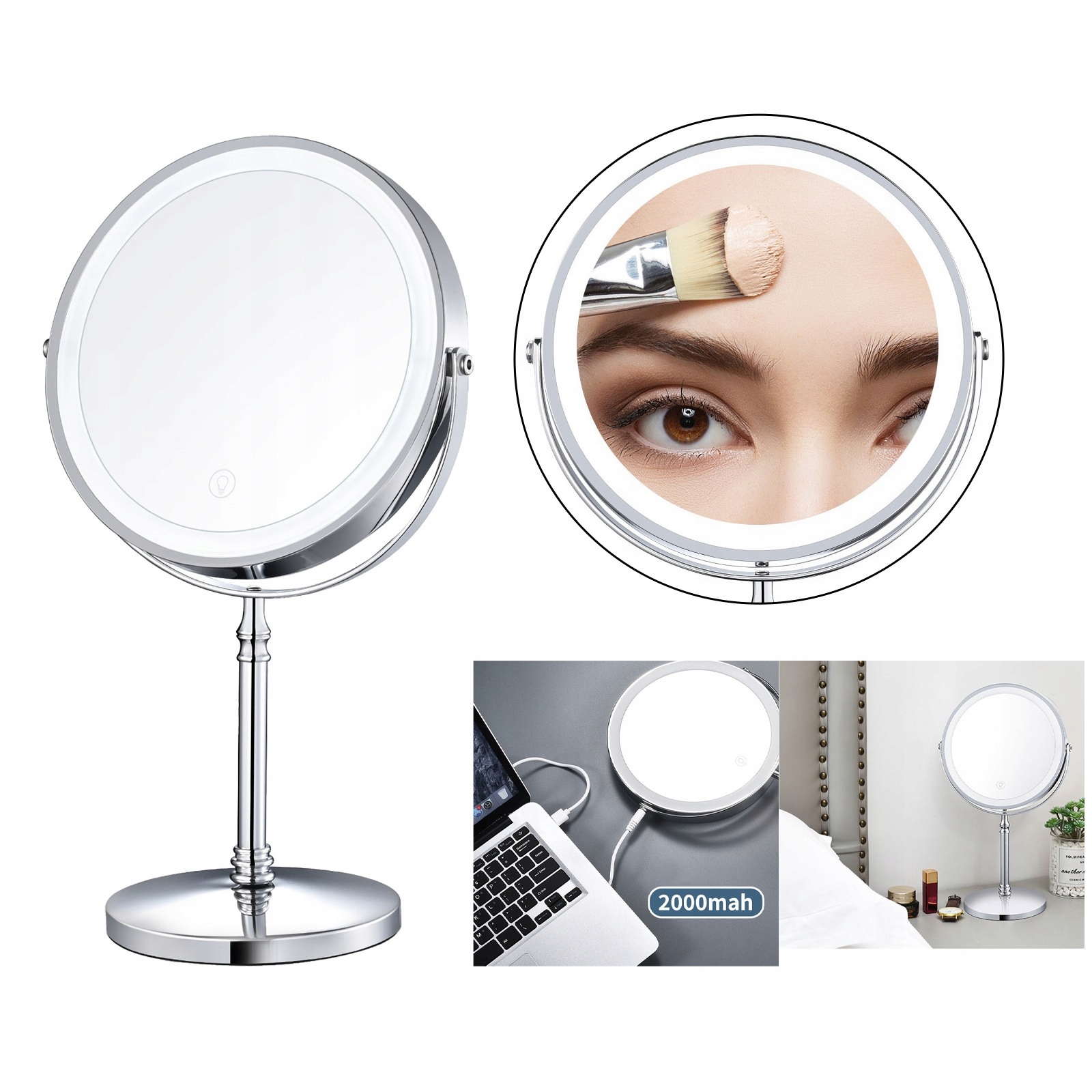 8-дюймовое косметическое зеркало со светодиодной подсветкой для настольного косметического зеркала. Двустороннее зеркало с 5-кратным увеличением. Зеркало с USB-заполнением.