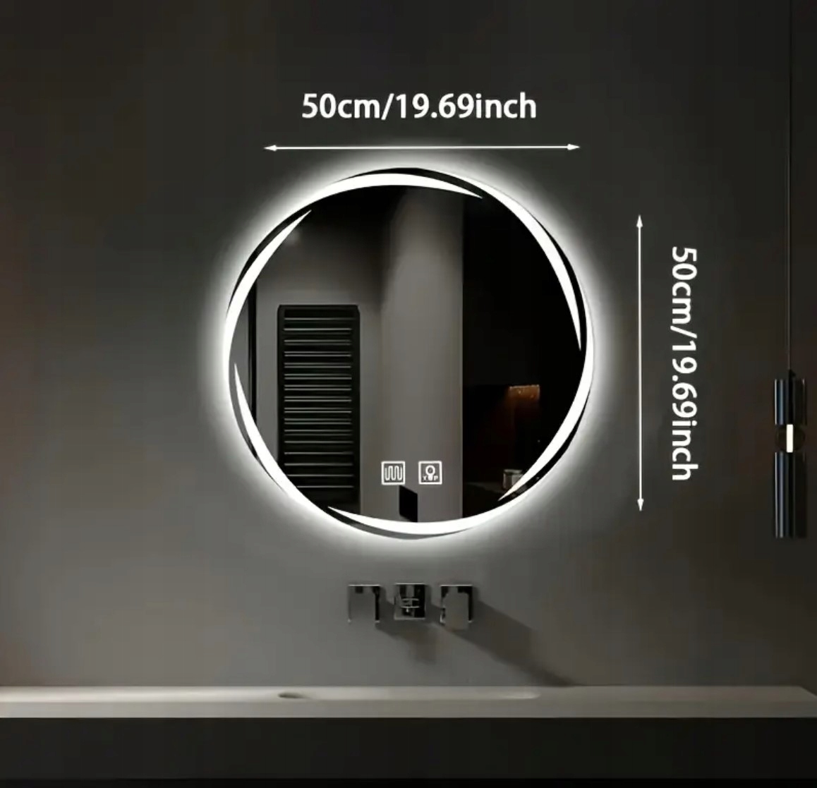 СВЕТОДИОДНОЕ ЗЕРКАЛО ДЛЯ ВАННОЙ 50 СМ КРУГЛОЕ С ПОДСВЕТКОЙ, БЕЗ ПАРА, РЕЖИМ ЯРКОСТИ