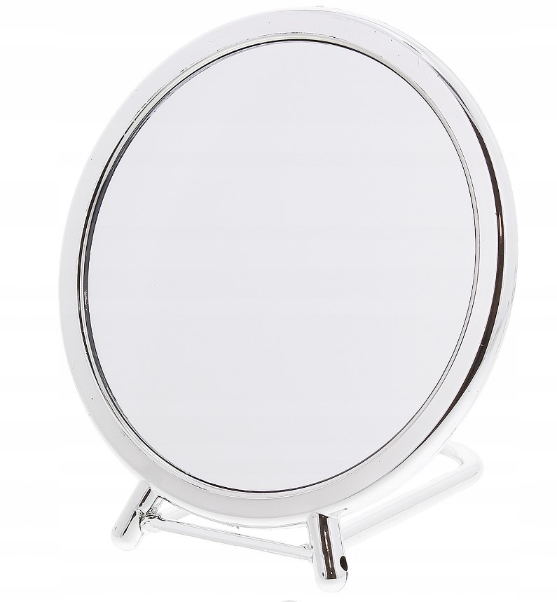 Зеркало с серебристым корпусом и устойчивым основаниемочень практично и занимает мало места. Изделие имеет две поверхности: одну обычную, другую - увеличивающую. Его можно использовать в качестве оборудования для ванной комнаты, спальни или другого помещения. Идеальный подарок для женщин и маленьких леди.