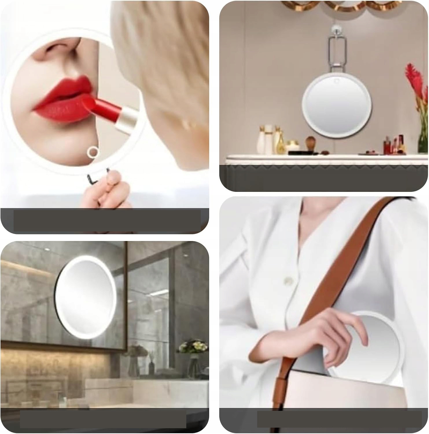 🪞🪞【СТИЛЬНОЕ И МНОГОФУНКЦИОНАЛЬНОЕ】 Портативное дорожное зеркало имеет функцию освещения и увеличения, а также имеет современный дизайн и выглядит элегантно. Это зеркало имеет складной центральный механизм с отверстиями для подвешивания, которое можно разместить на столе или повесить, а также регулировать угол наклона зеркала по своему вкусу. Он легкий и складной, его можно легко хранить в чемоданах, дорожных сумках во время путешествий.