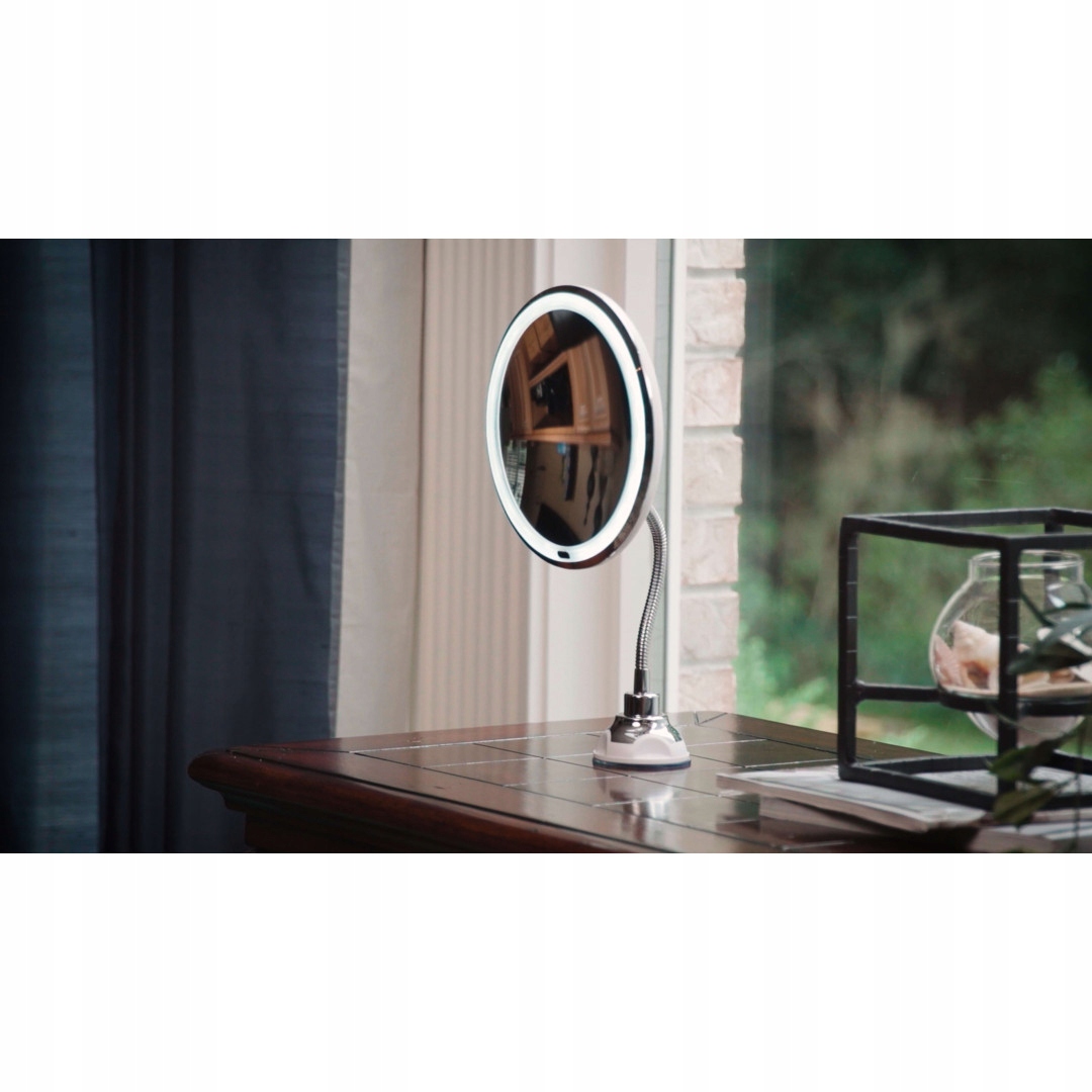 Увеличительное зеркало со светодиодной подсветкой, гибким кронштейном и прочной присоской.