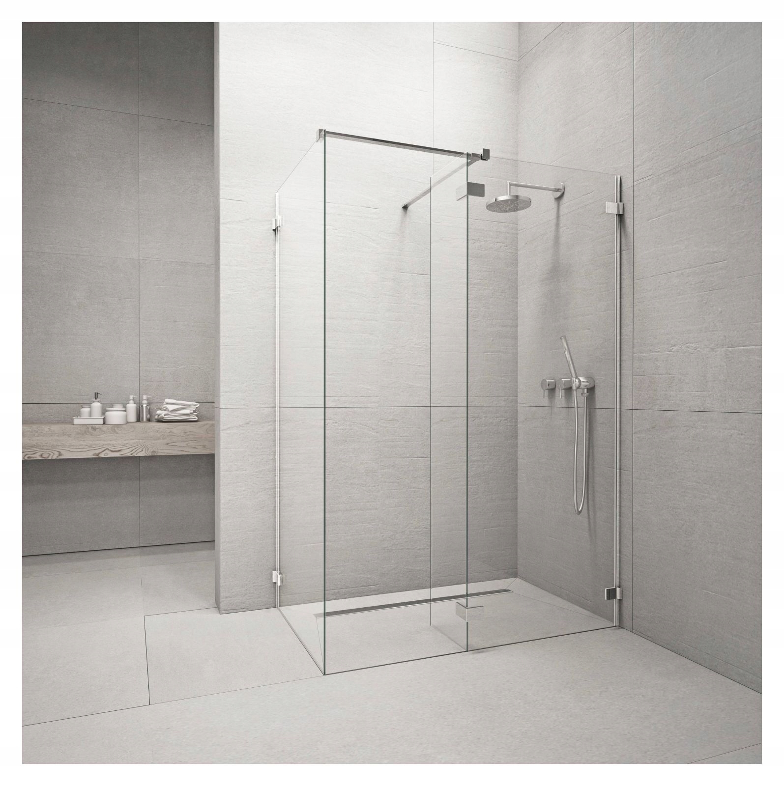 Современная душевая кабина RADAWAY Euphoria Walk-In III, оснащенная инновационной фурнитурой вровень со стеклянной поверхностью, исключающей пространство для образования грязи.