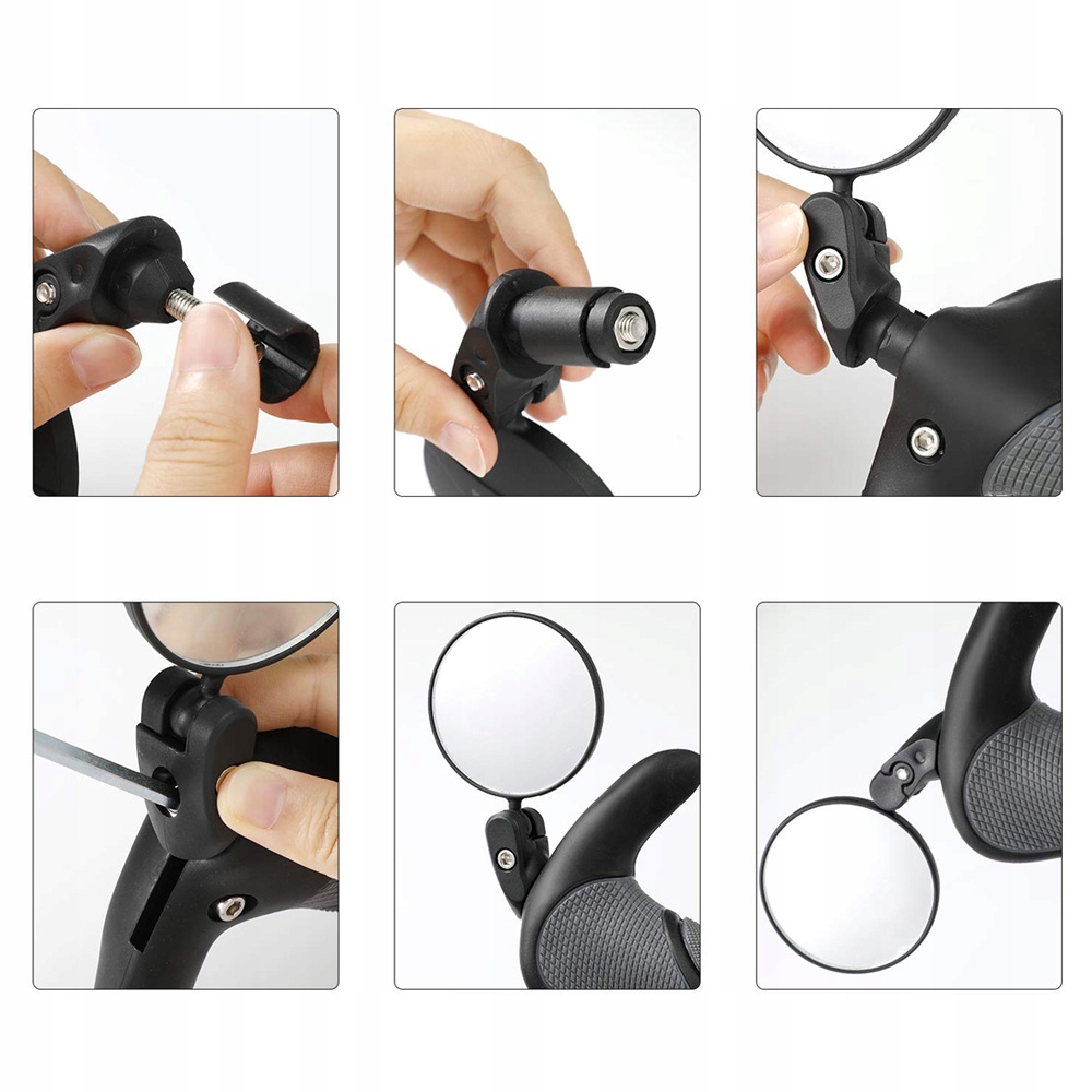 Зеркало велосипеда может быть установлено под любым углом, что облегчает наблюдение за дорожными условиями. Когда это не используется, зеркало велосипеда может быть полностью скрыто, не заняв место.