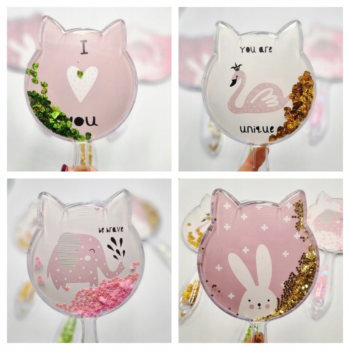 Зеркало с ручкой и блестками для подростков и девочек, большое, 24 см.