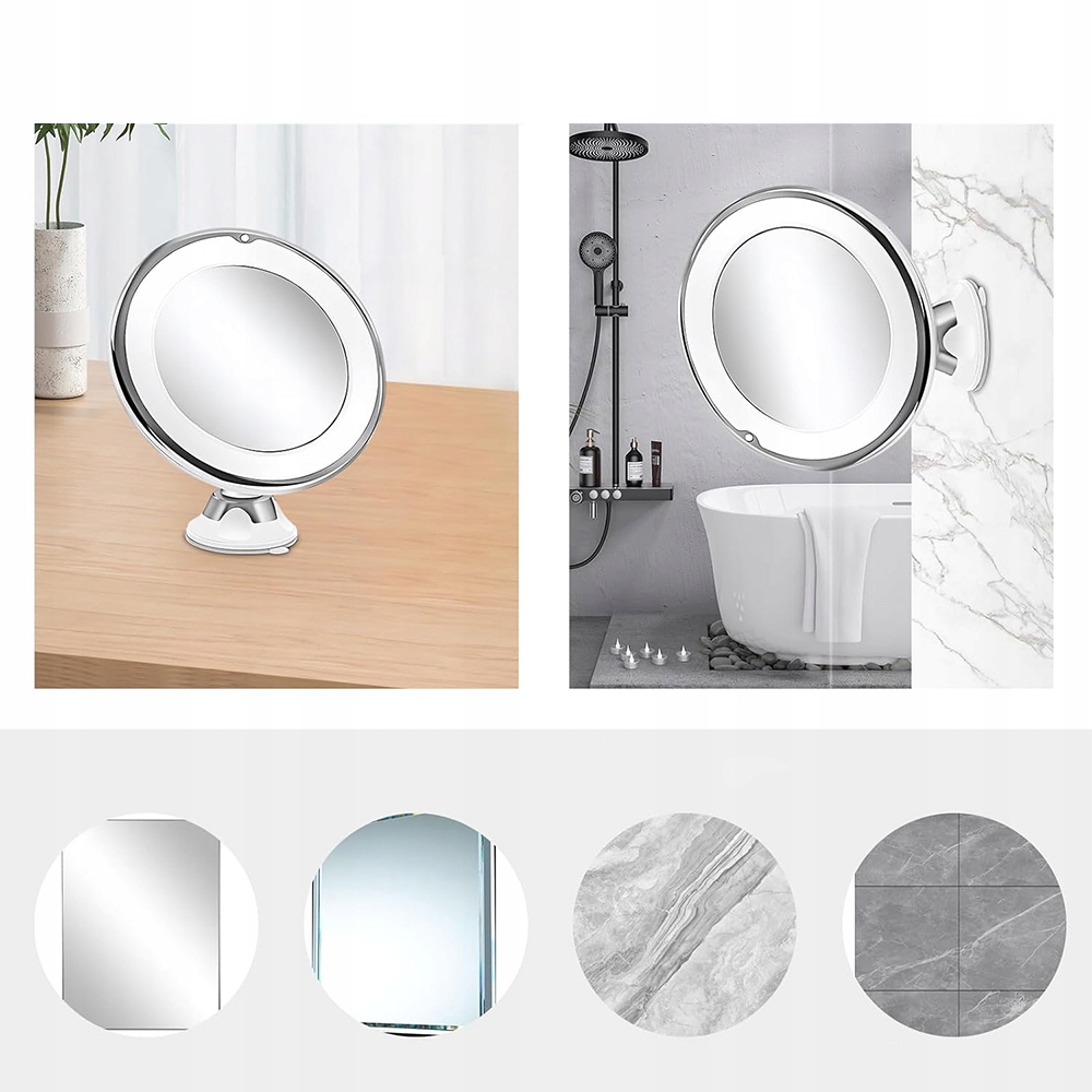 🏡 Косметическое зеркало с 10-кратным увеличением светодиода, ротационный шаровой шарнир 360 °, сильная всасывающая чашка всасывания