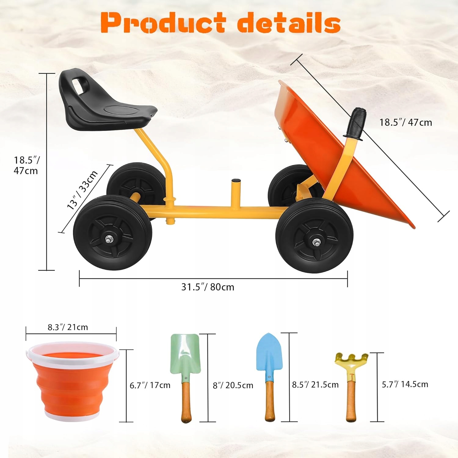Dziecięca taczka metalowa z narzędziami do piaskownicy i plaży