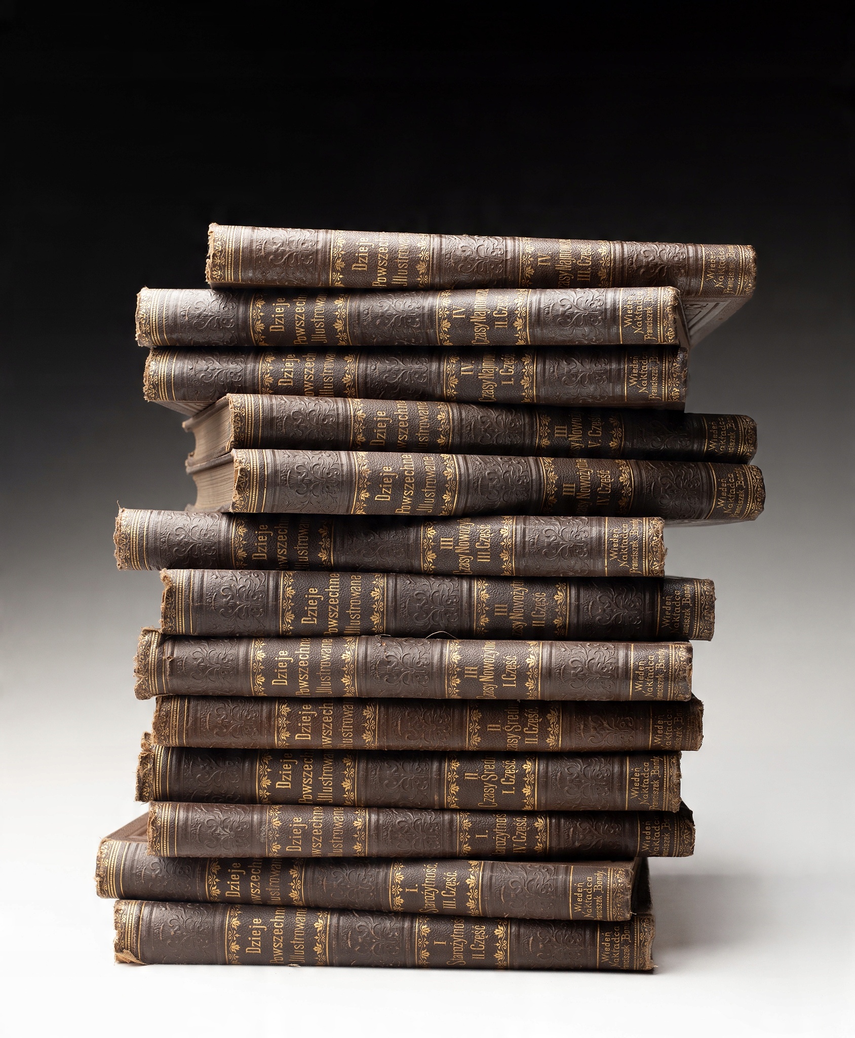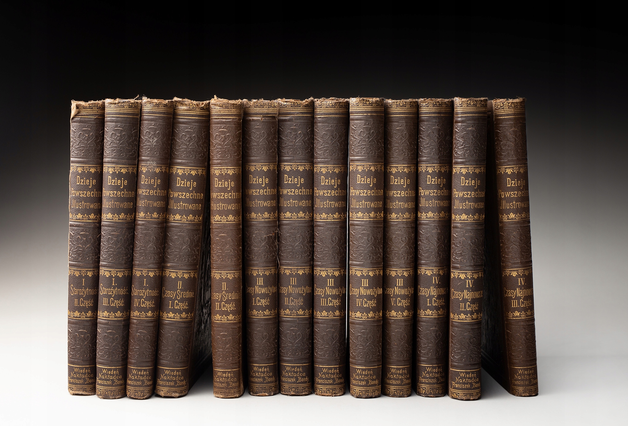 На рубеже XIX и XX веков издание «Historia Powszechnie Ilustrowane» было опубликовано в тринадцати томах Францишеком Бонди. Тринадцать из шестнадцати томов самой впечатляющей, богато иллюстрированной «Всемирной истории», изданной на польском языке. Каждый том имеет коричневый оригинальный издательский переплет из ткани с тиснением на лицевой стороне герба Литовской Погони и Белого Орла в овале, корешки которого тиснены золотом. Внутри многочисленные иллюстрации, картоны, карты, изображения - многие иллюстрации выполнены в графических техниках. Издательский комплект, изданный под руководством Людвика Кубалы, разработанный: проф. Михал Литыньский, доктор Кароль Й. Нитман, Чеслав Пененжек, Жегота Правджич, Роберт Ришка, доктор Генрих Савчинский, Альфред Щепаньский и Бронислав Завадский.
