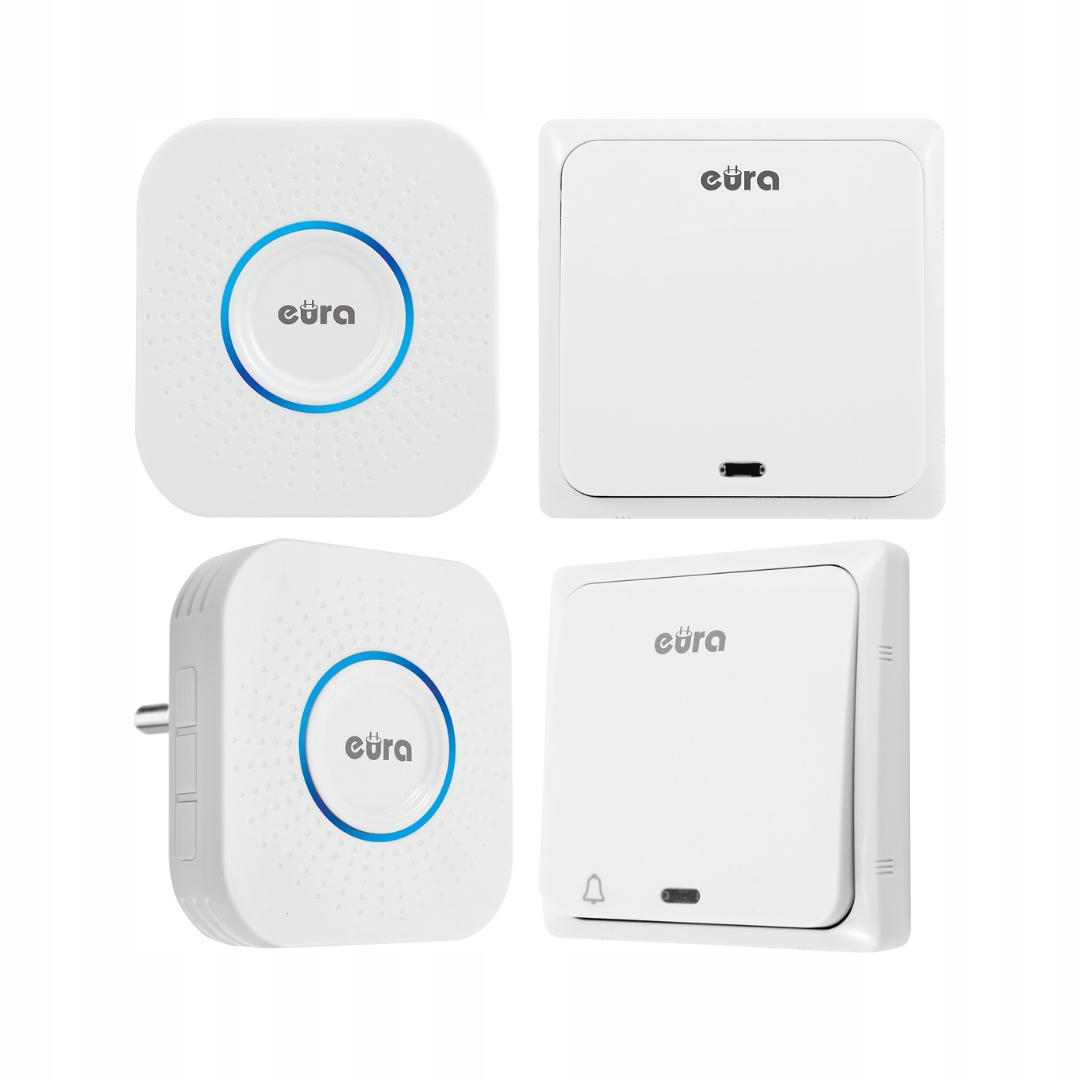 Eura Kinetic — это беспроводная система дверного звонка с кнопкой без батареи, работающей в диапазоне 433 МГц. В ее основе лежат элементы, взаимное взаимодействие которых возможно благодаря использованию специальной системы кодирования передатчиков и приемников сигналов. Данная система позволяет расширить комплектацию (с 1 передатчиком могут работать максимум 6 приемников, с 1 приемником может работать неограниченное количество передатчиков).
