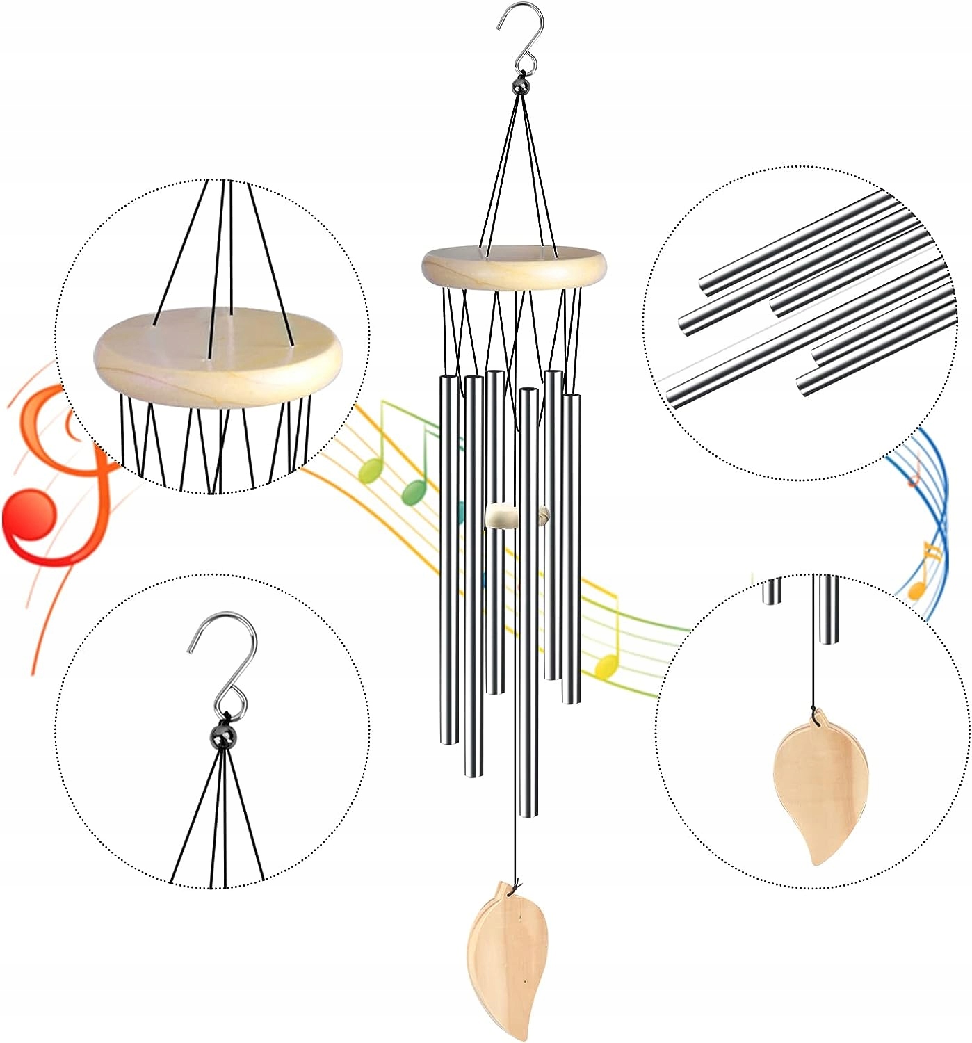 Металлические трубки точно откалиброваны для воспроизведения глубоких, расслабляющих звуков. Когда ветер начинает шевелить колокола, их мелодичный звук переносит вас в мир покоя и релаксации.